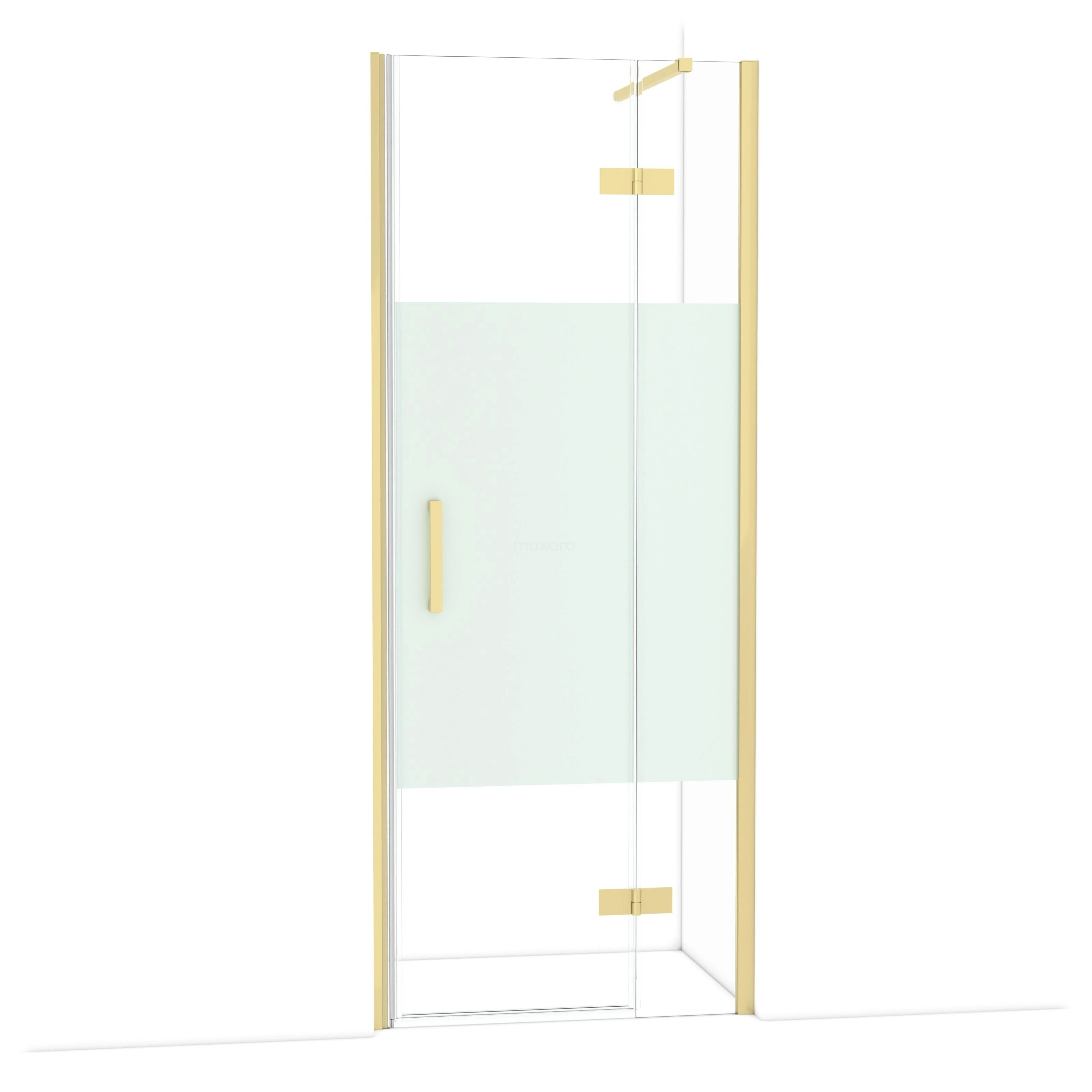 Die 80 cm lange Drehtür von Diamond ist ideal, um Ihren Duschbereich abzuschließen. Sie hat eine hellgoldene Oberfläche und ist mit hochwertigen Scharnieren, einem Wandprofil und einem vertikalen Griff ausgestattet. Das Klarglas mit mattem Streifen sorgt für mehr Privatsphäre. Die Verstellbarkeit macht es einfach, die Duschtür zu montieren. Die Gesamtbreite ist von 81,8 bis 84 cm verstellbar.