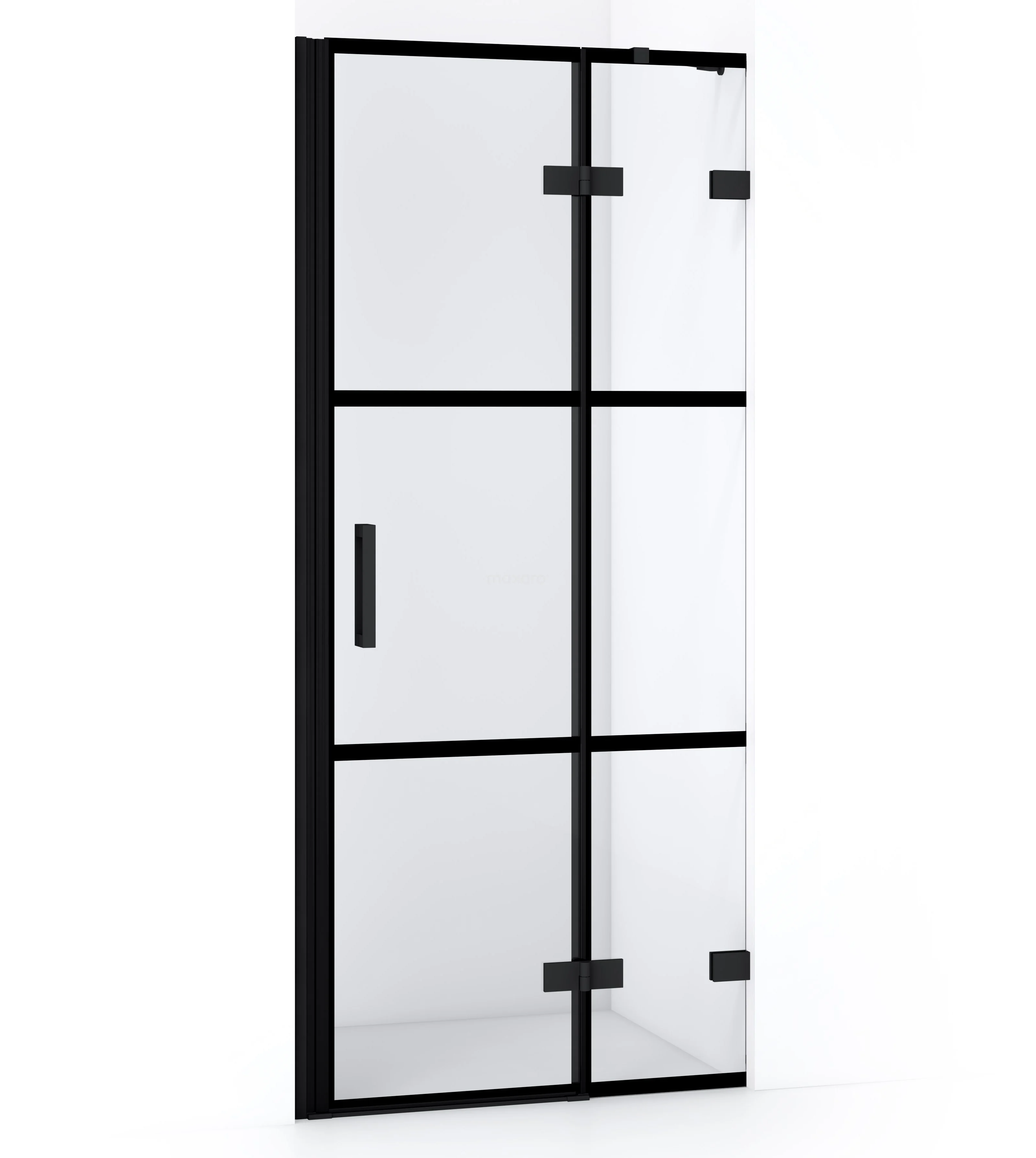 Diamond Duschtür | 80 cm Matt Schwarz Klar mit 4 schwarzen Streifen Drehtür