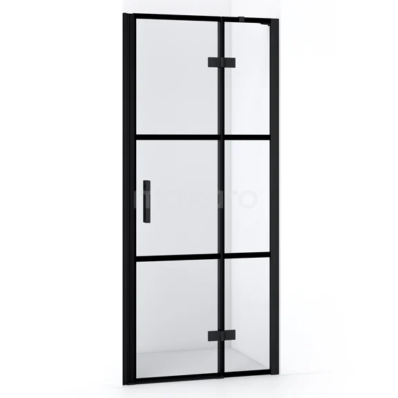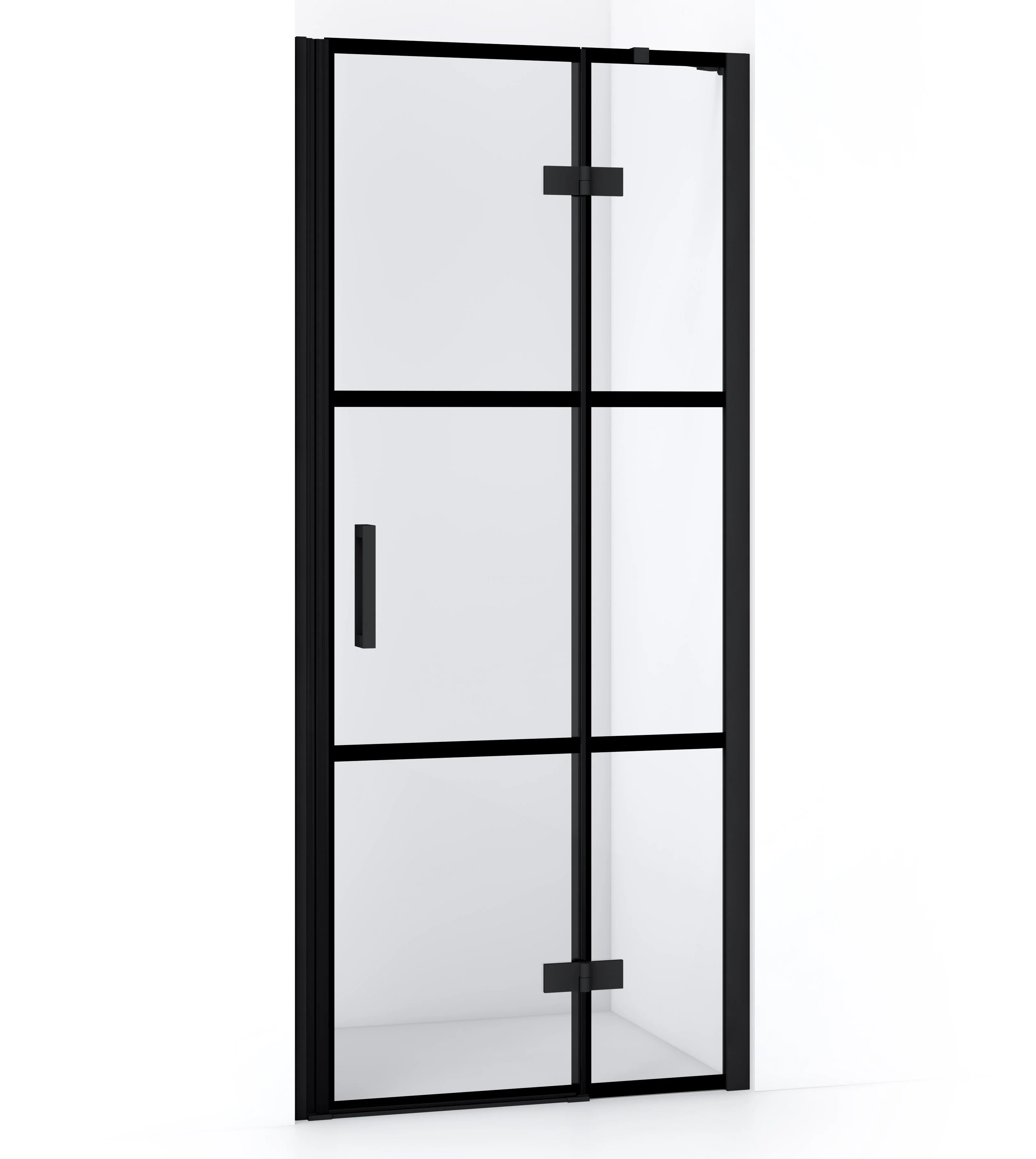 Diamond Duschtür | 80 cm Matt Schwarz Klar mit 4 schwarzen Streifen Drehtür