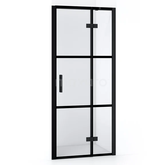 Diamond Duschtür | 80 cm Matt Schwarz Klar mit 4 schwarzen Streifen Drehtür