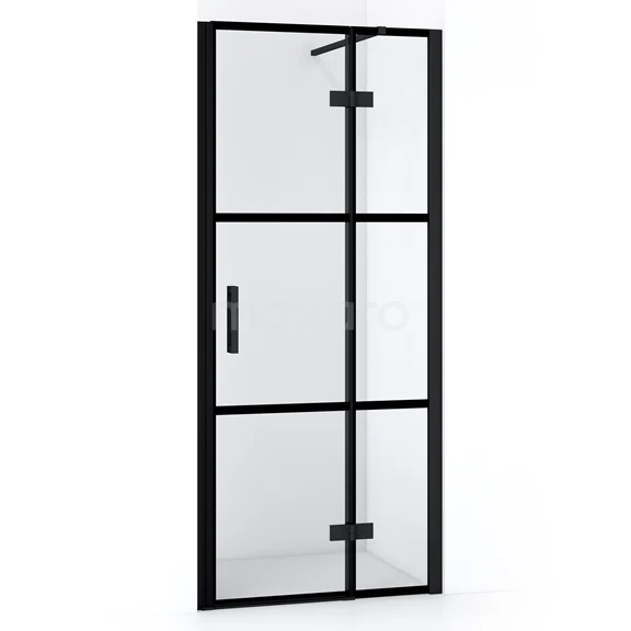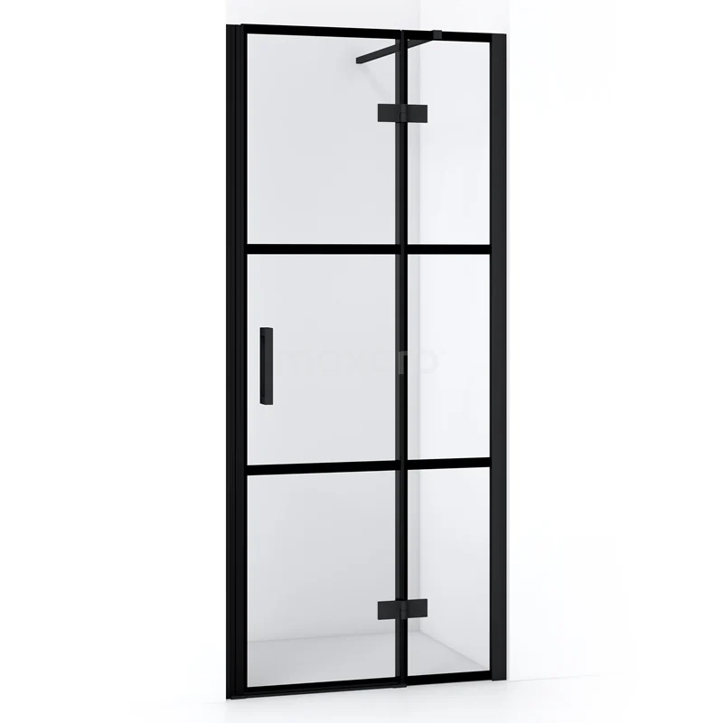 Diamond Duschtür | 80 cm Matt Schwarz Klar mit 4 schwarzen Streifen Drehtür