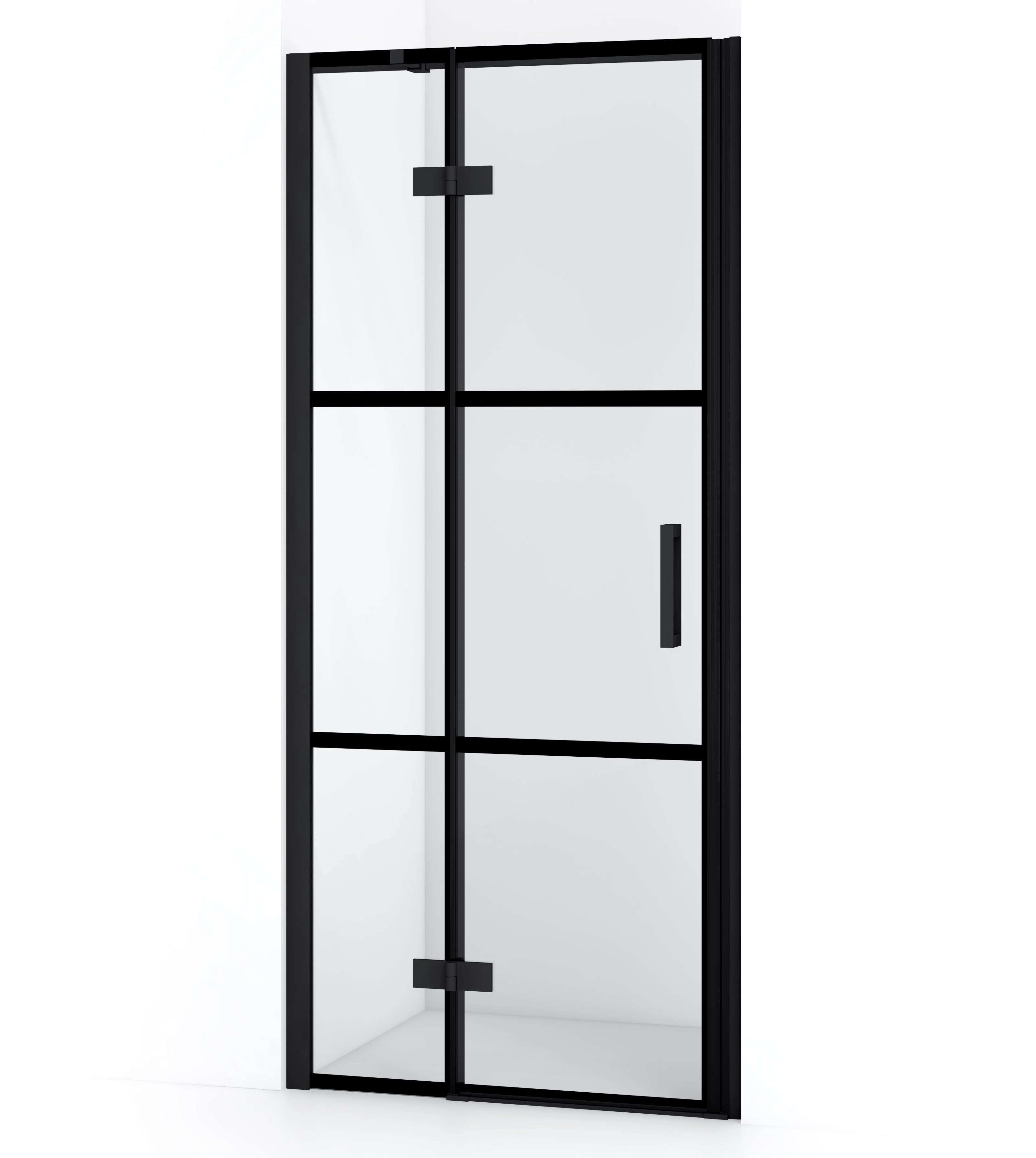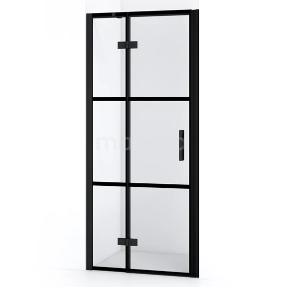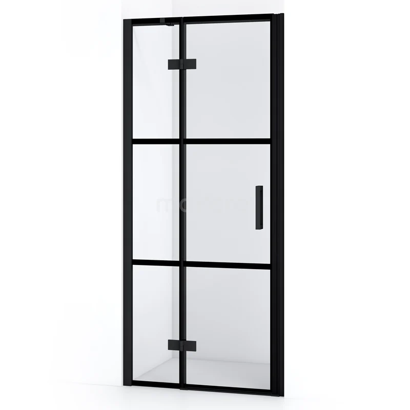 Diamond Duschtür | 80 cm Matt Schwarz Klar mit 4 schwarzen Streifen Drehtür
