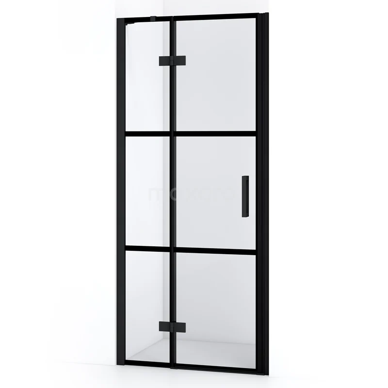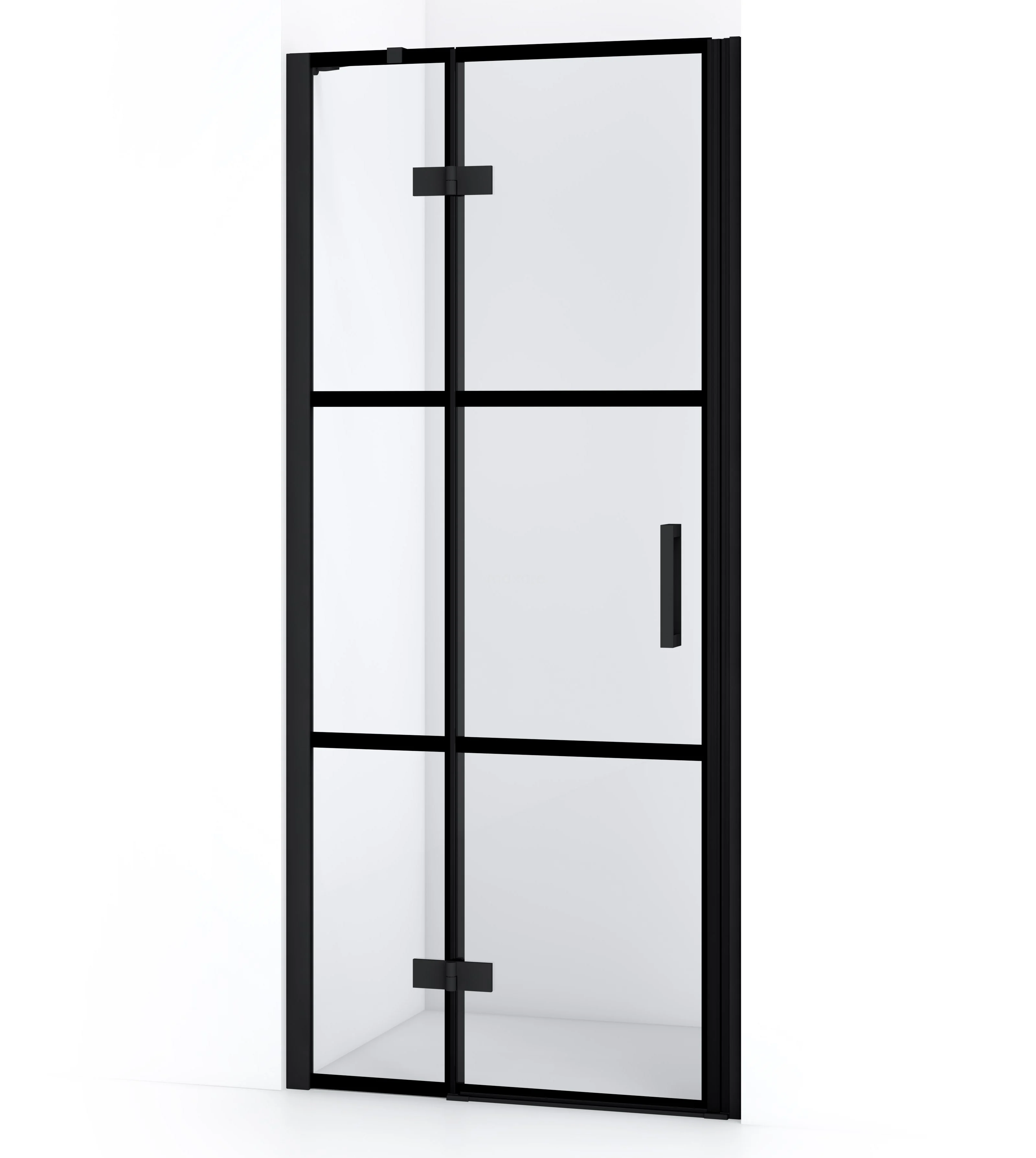 Diamond Duschtür | 80 cm Matt Schwarz Klar mit 4 schwarzen Streifen Drehtür