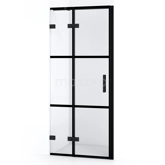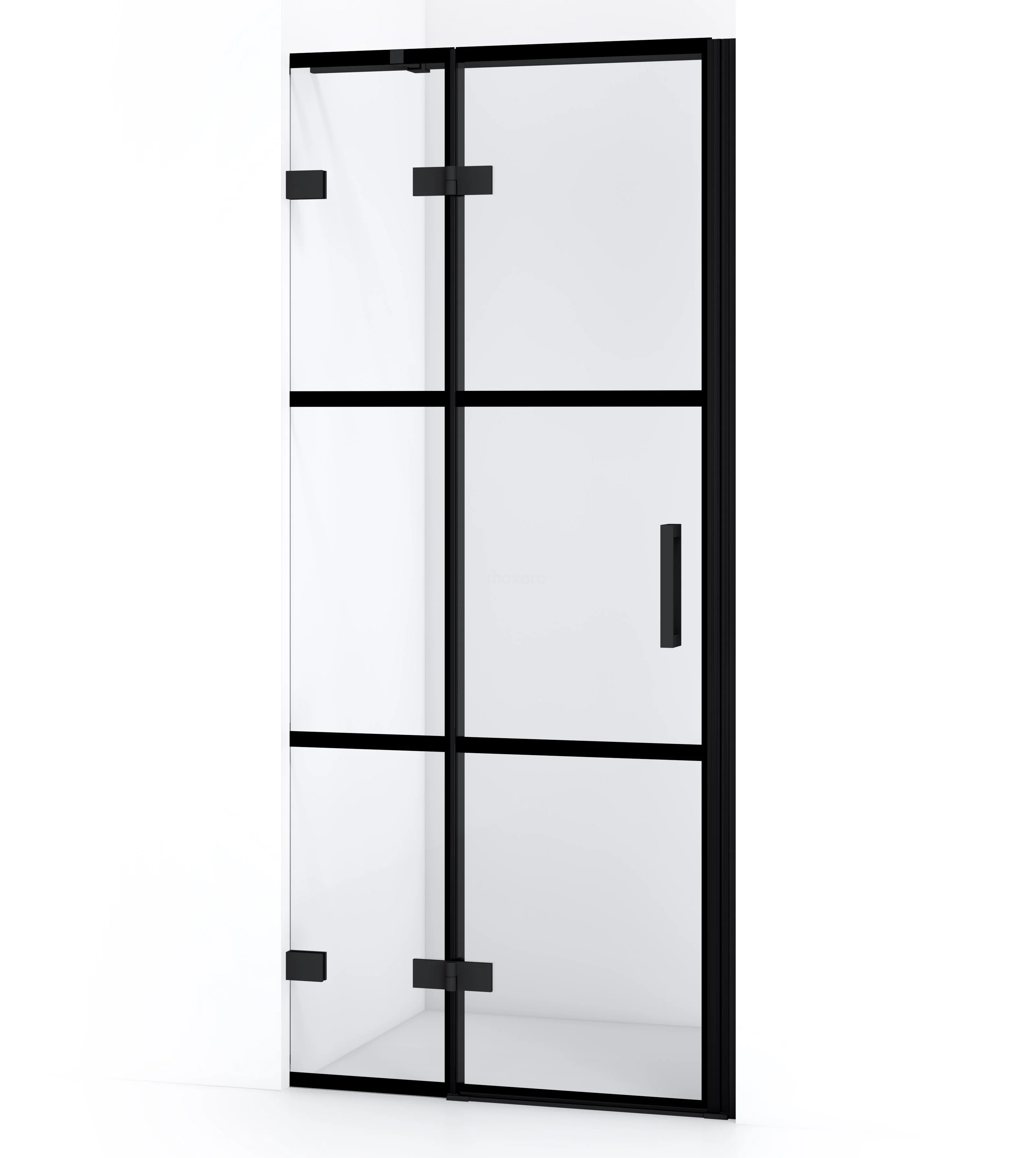 Diamond Duschtür | 80 cm Matt Schwarz Klar mit 4 schwarzen Streifen Drehtür
