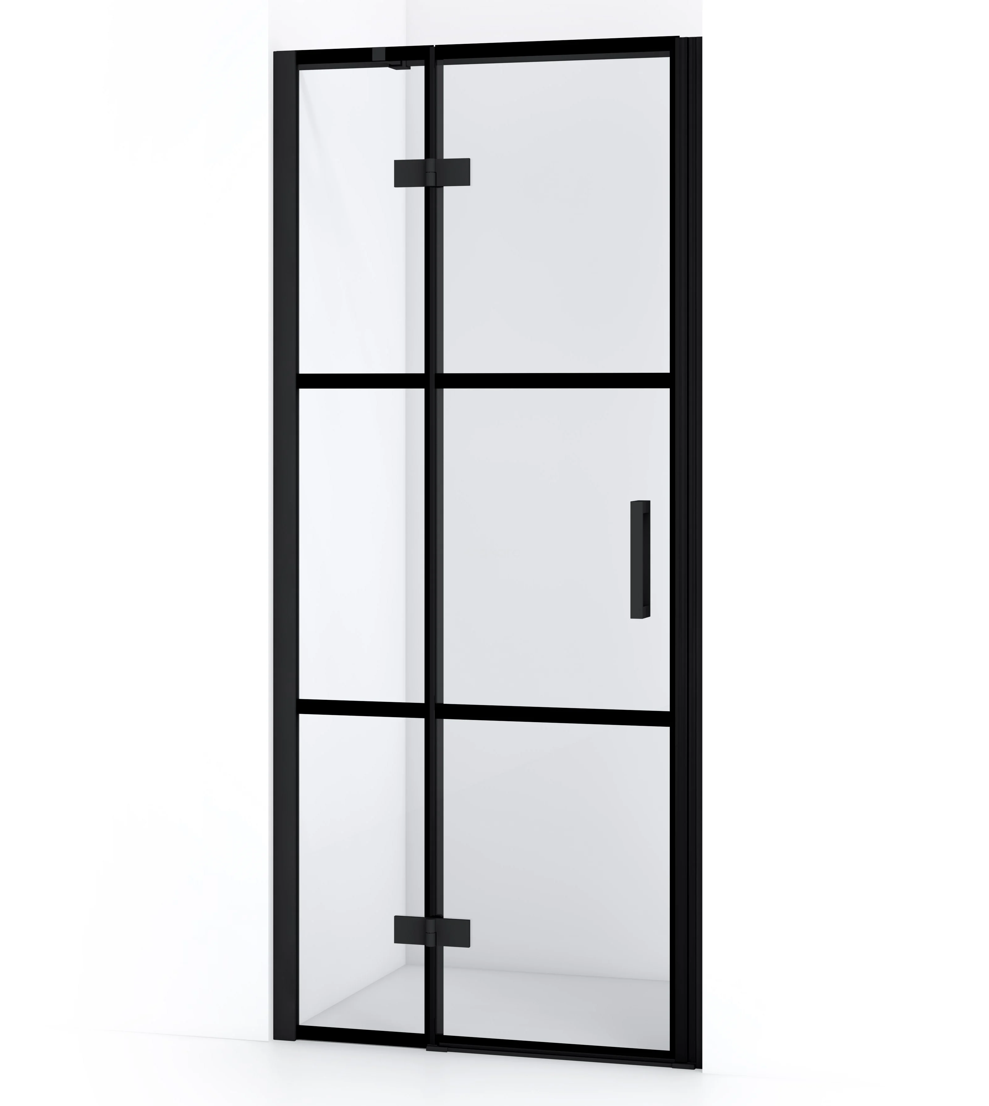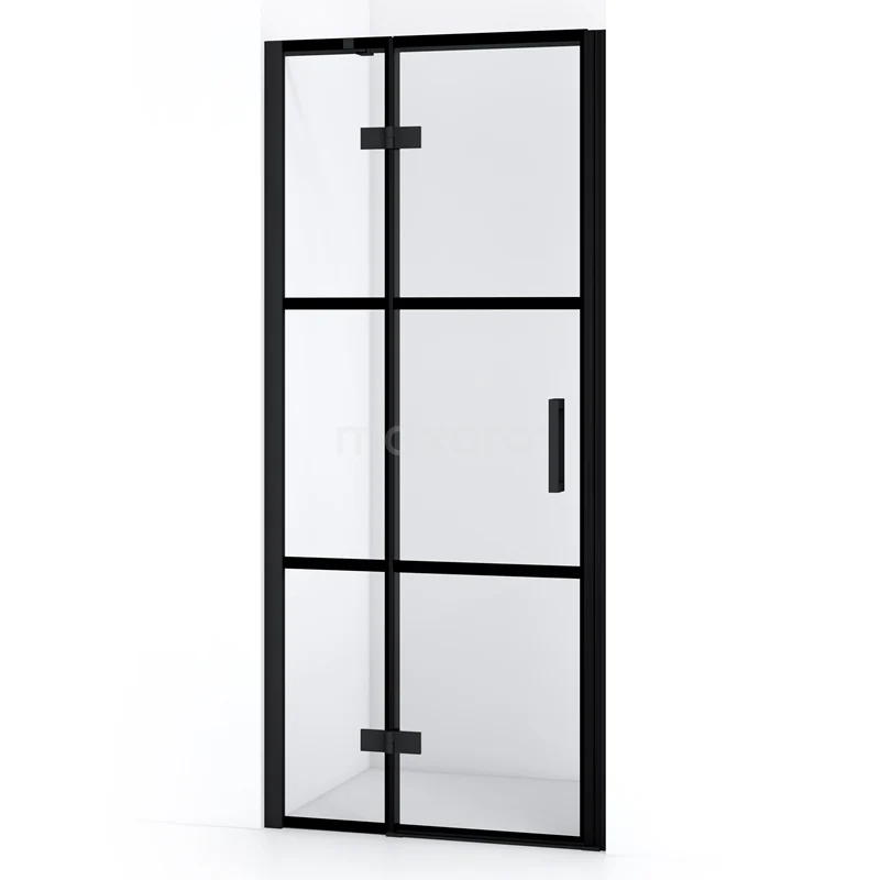 Diamond Duschtür | 80 cm Matt Schwarz Klar mit 4 schwarzen Streifen Drehtür