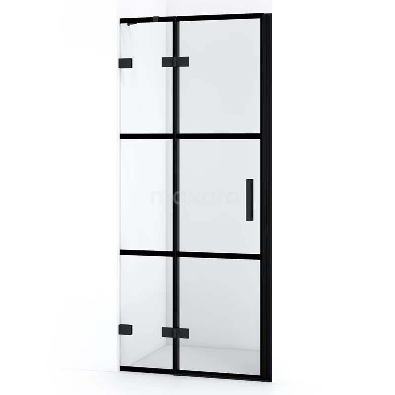 Diamond Duschtür | 80 cm Matt Schwarz Klar mit 4 schwarzen Streifen Drehtür