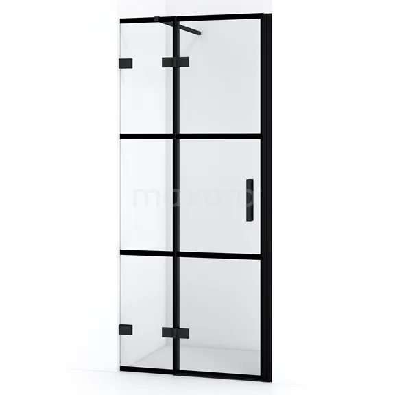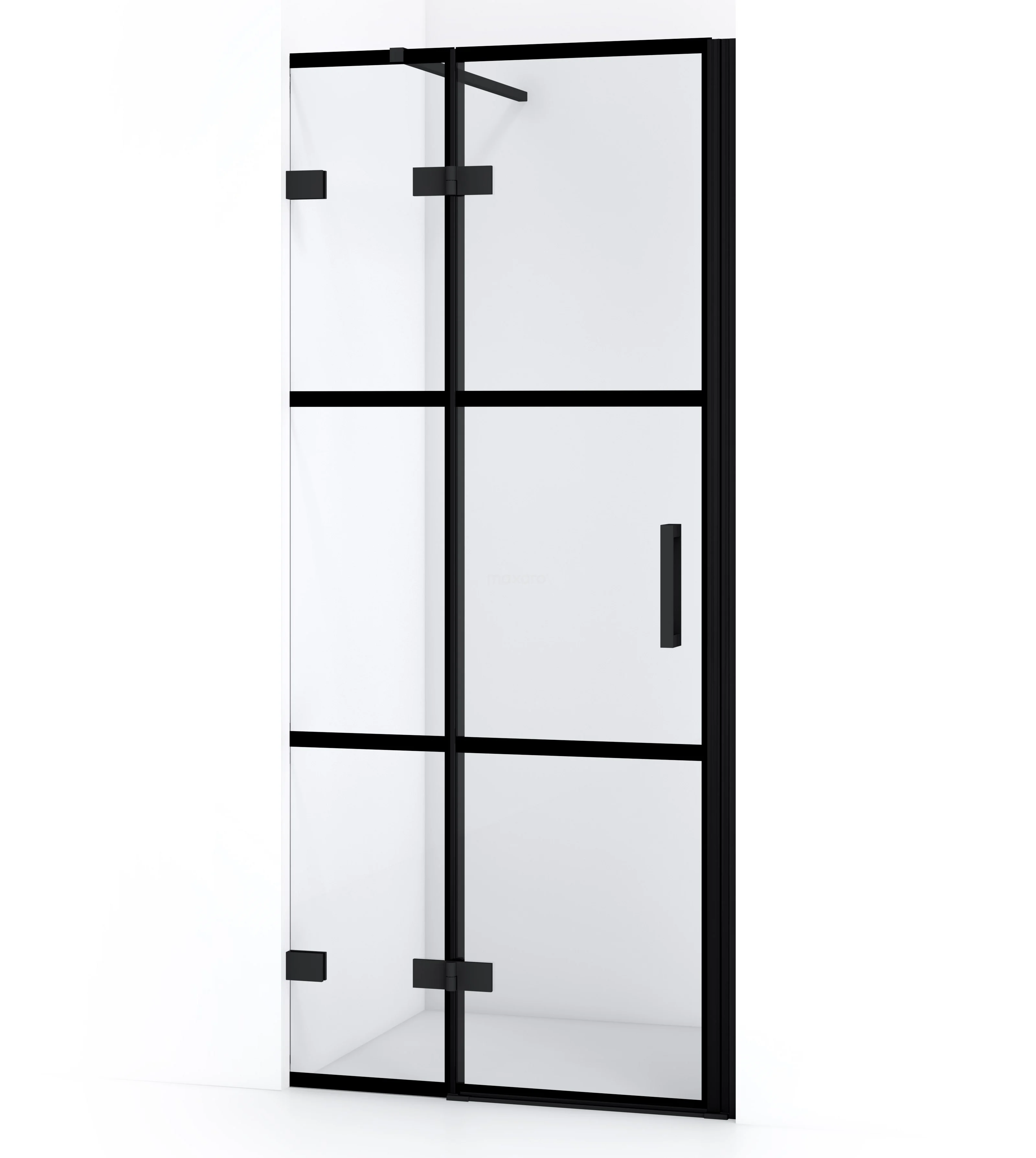 Diamond Duschtür | 80 cm Matt Schwarz Klar mit 4 schwarzen Streifen Drehtür