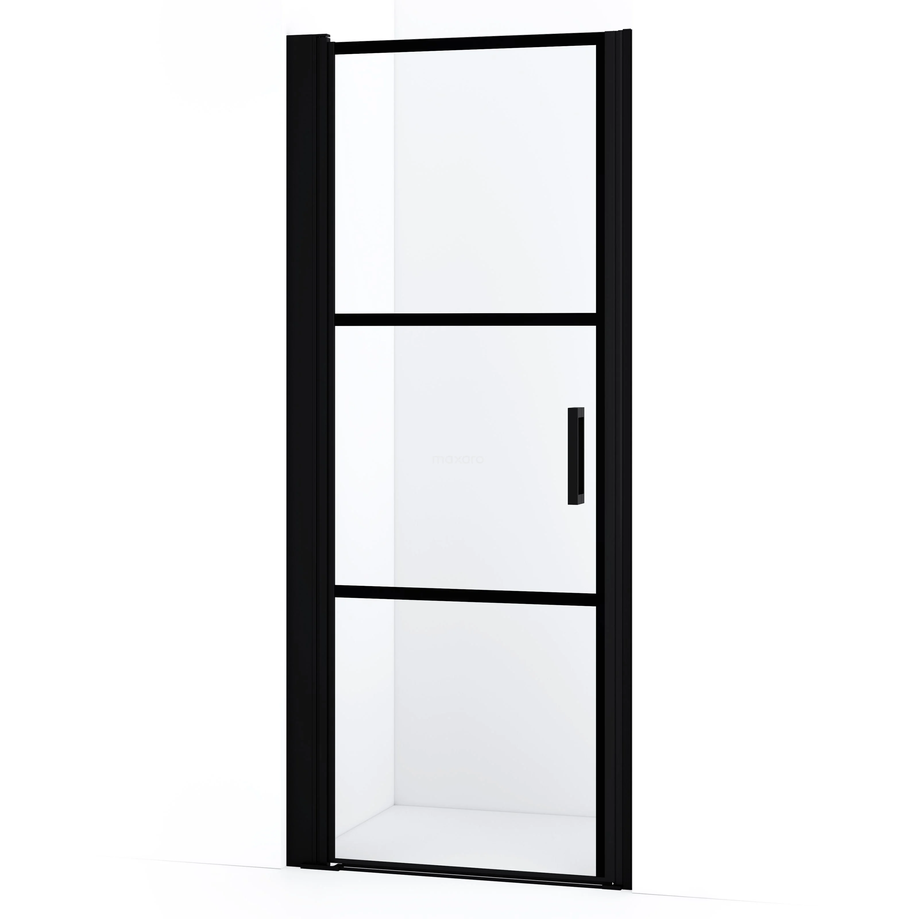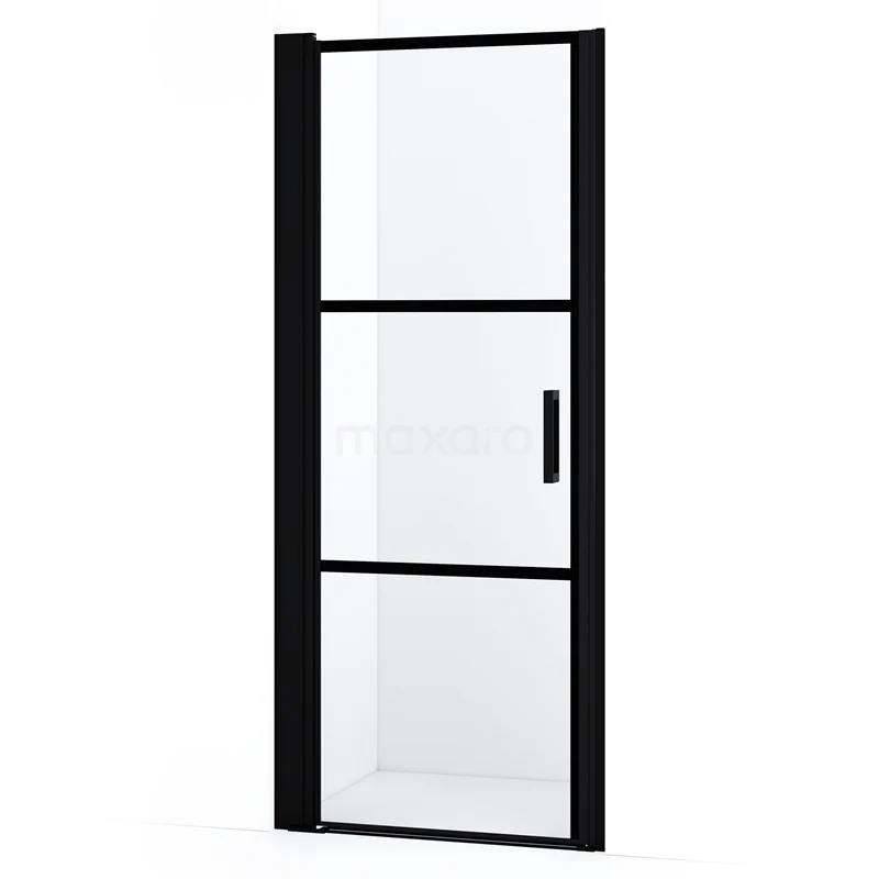 Diamond Duschtür | 80 cm Matt Schwarz Klar mit 4 schwarzen Streifen Drehtür