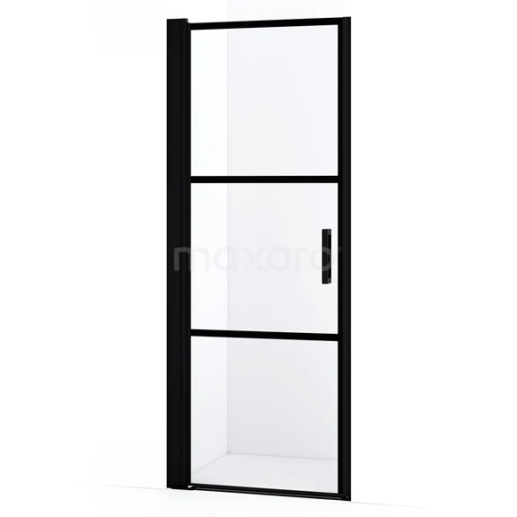 Diamond Duschtür | 80 cm Matt Schwarz Klar mit 4 schwarzen Streifen Drehtür