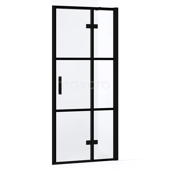 Diamond Duschtür | 80 cm Matt Schwarz Klar mit 4 schwarzen Streifen Drehtür