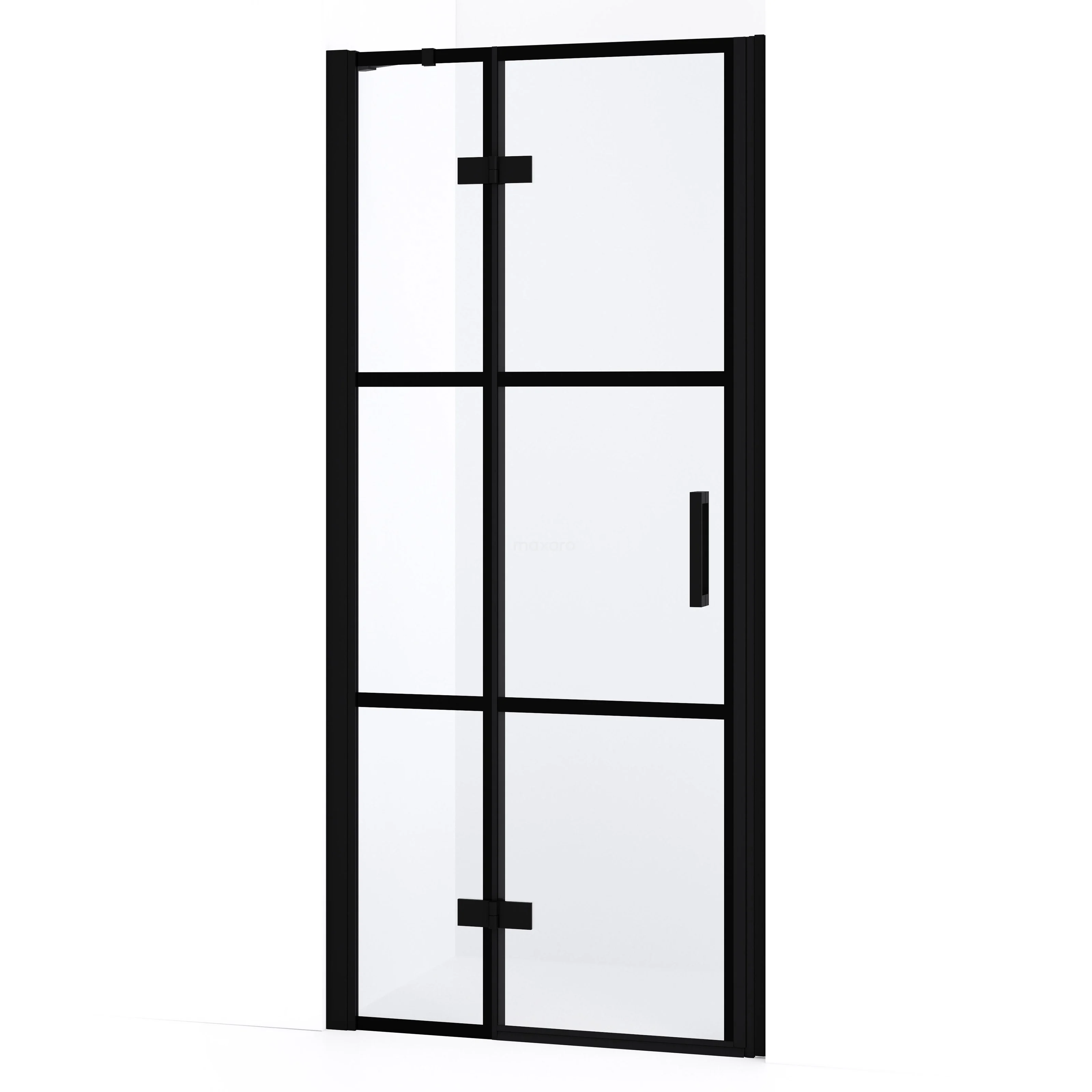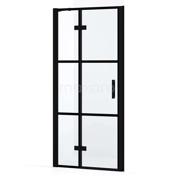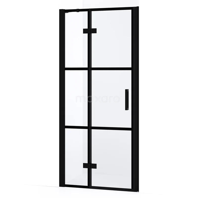 Diamond Duschtür | 80 cm Matt Schwarz Klar mit 4 schwarzen Streifen Drehtür