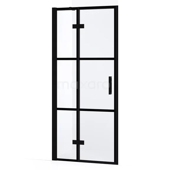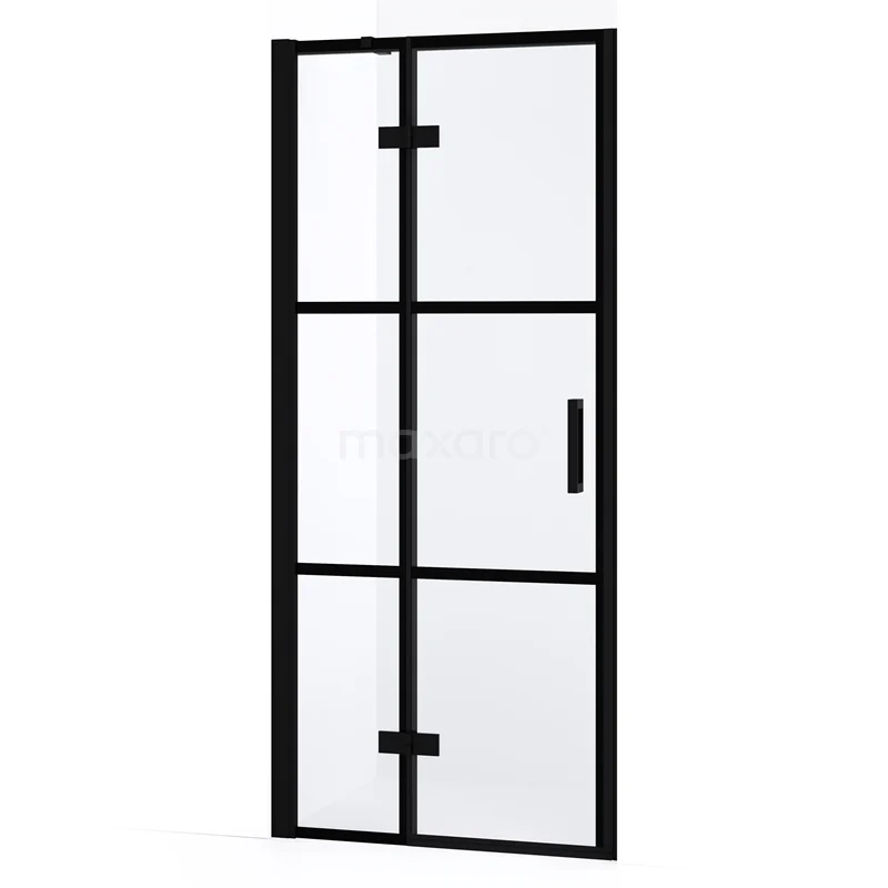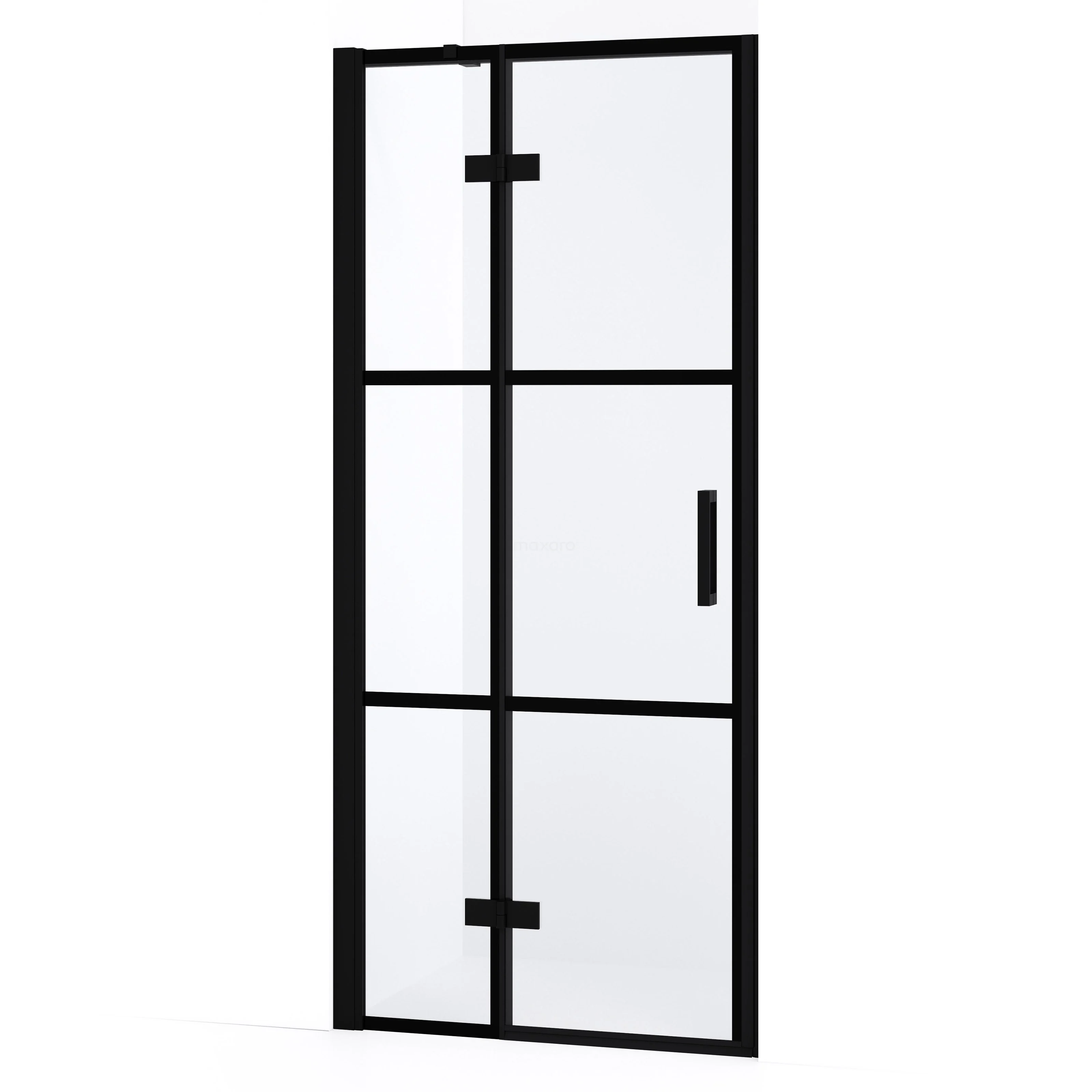 Diamond Duschtür | 80 cm Matt Schwarz Klar mit 4 schwarzen Streifen Drehtür