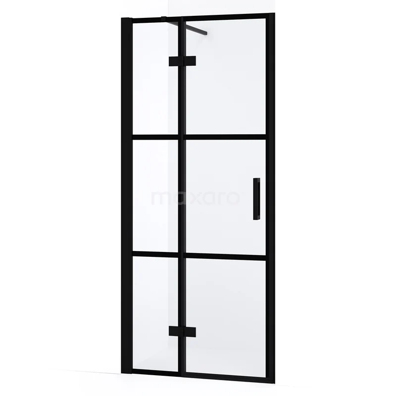 Diamond Duschtür | 80 cm Matt Schwarz Klar mit 4 schwarzen Streifen Drehtür
