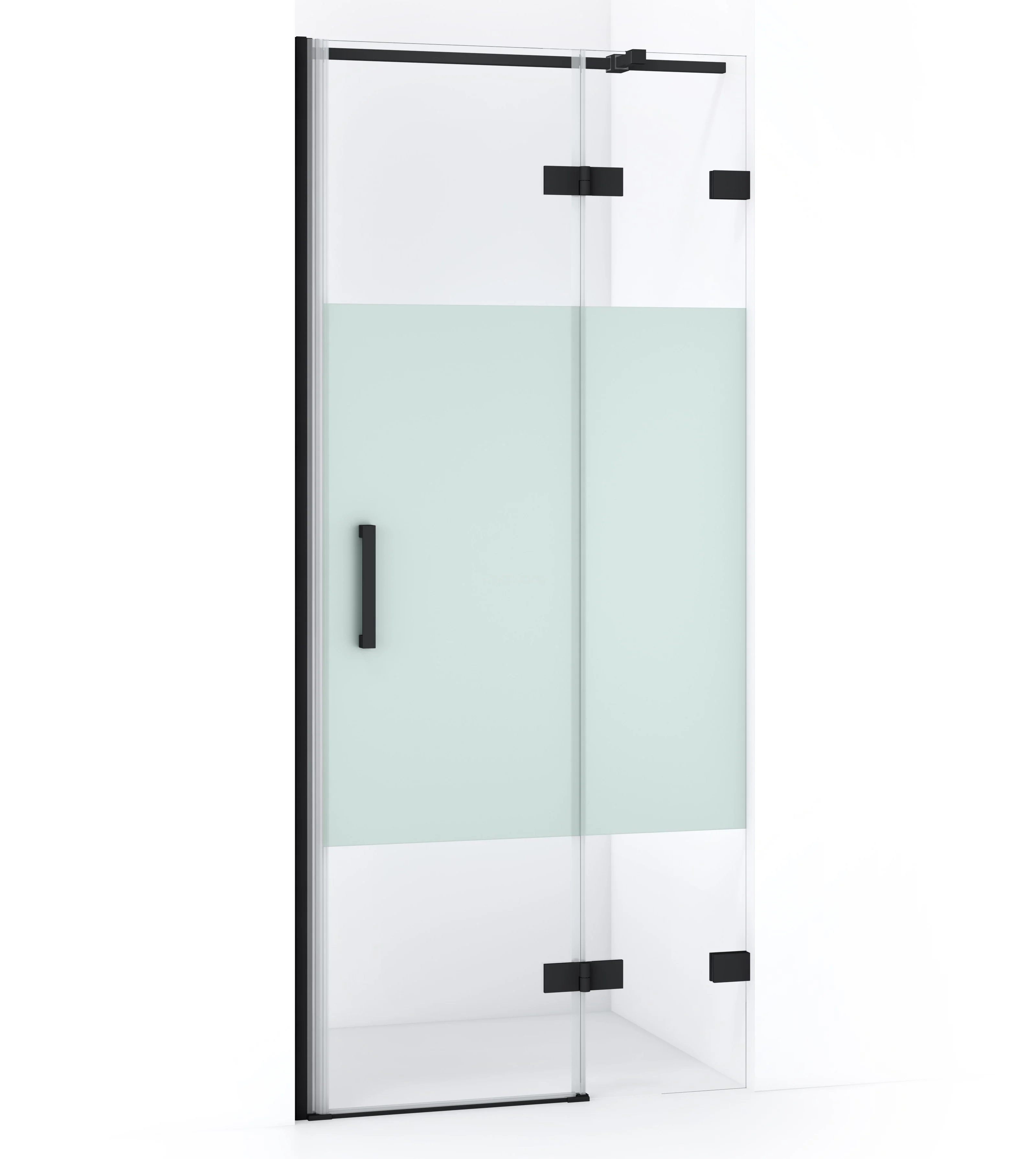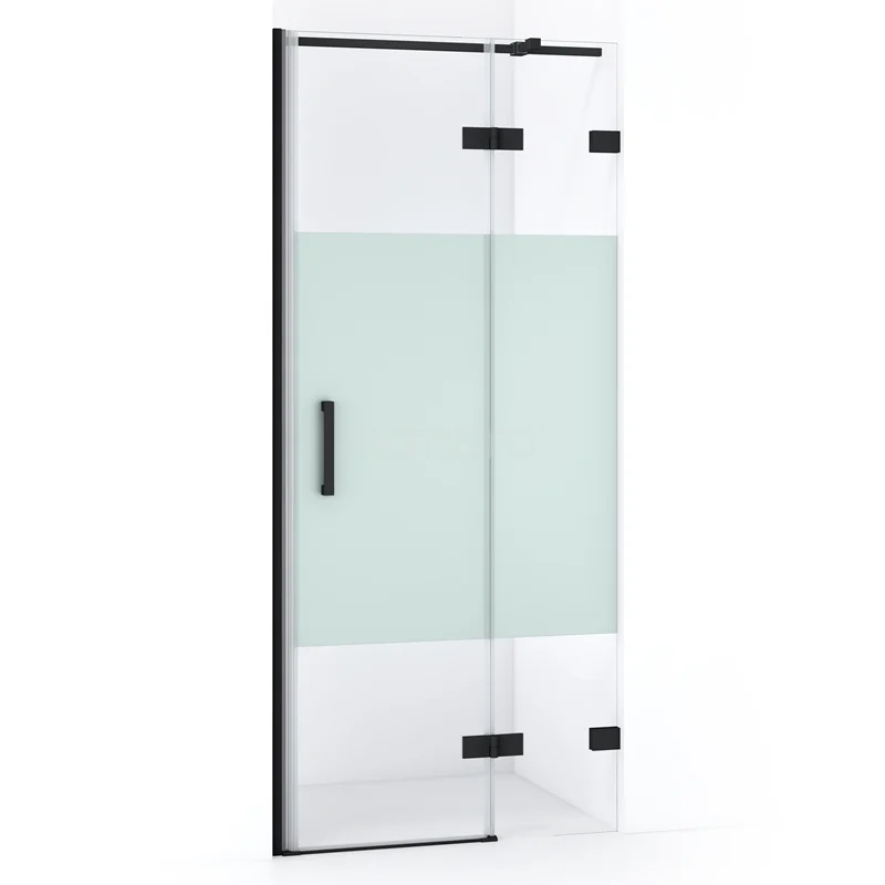 Diamond Duschtür | 80 cm Matt Schwarz Klar mit matter Streifen Drehtür
