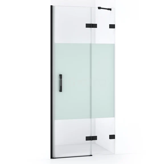 Diamond Duschtür | 80 cm Matt Schwarz Klar mit matter Streifen Drehtür