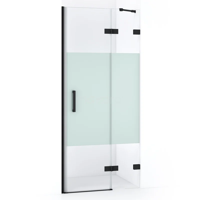 Die 80 cm lange Drehtür von Diamond ist ideal, um Ihren Duschbereich abzuschließen. Sie hat eine robuste, mattschwarze Oberfläche und ist mit hochwertigen Scharnieren, einer Zweipunktbefestigung an der Wand und einem vertikalen Griff ausgestattet. Der mattierte Streifen auf dem Glas sorgt für mehr Privatsphäre. Die Verstellbarkeit macht es einfach, die Duschtür zu montieren. Die Gesamtbreite ist von 81,7 bis 82,7 cm verstellbar.