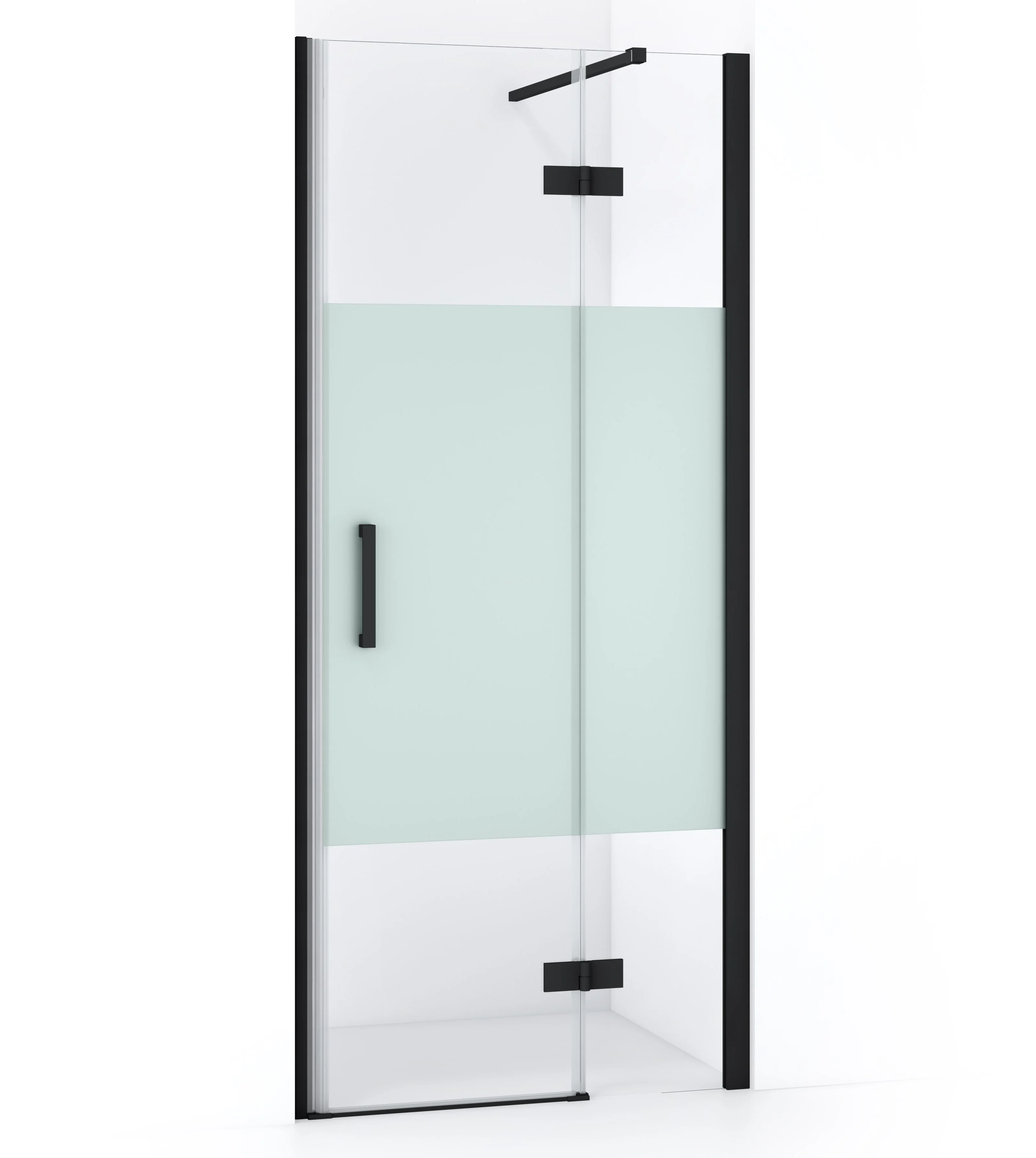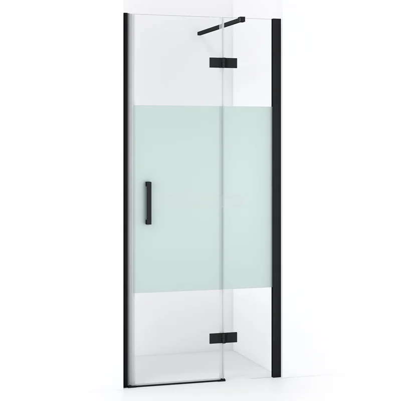 Diamond Duschtür | 80 cm Matt Schwarz Klar mit matter Streifen Drehtür