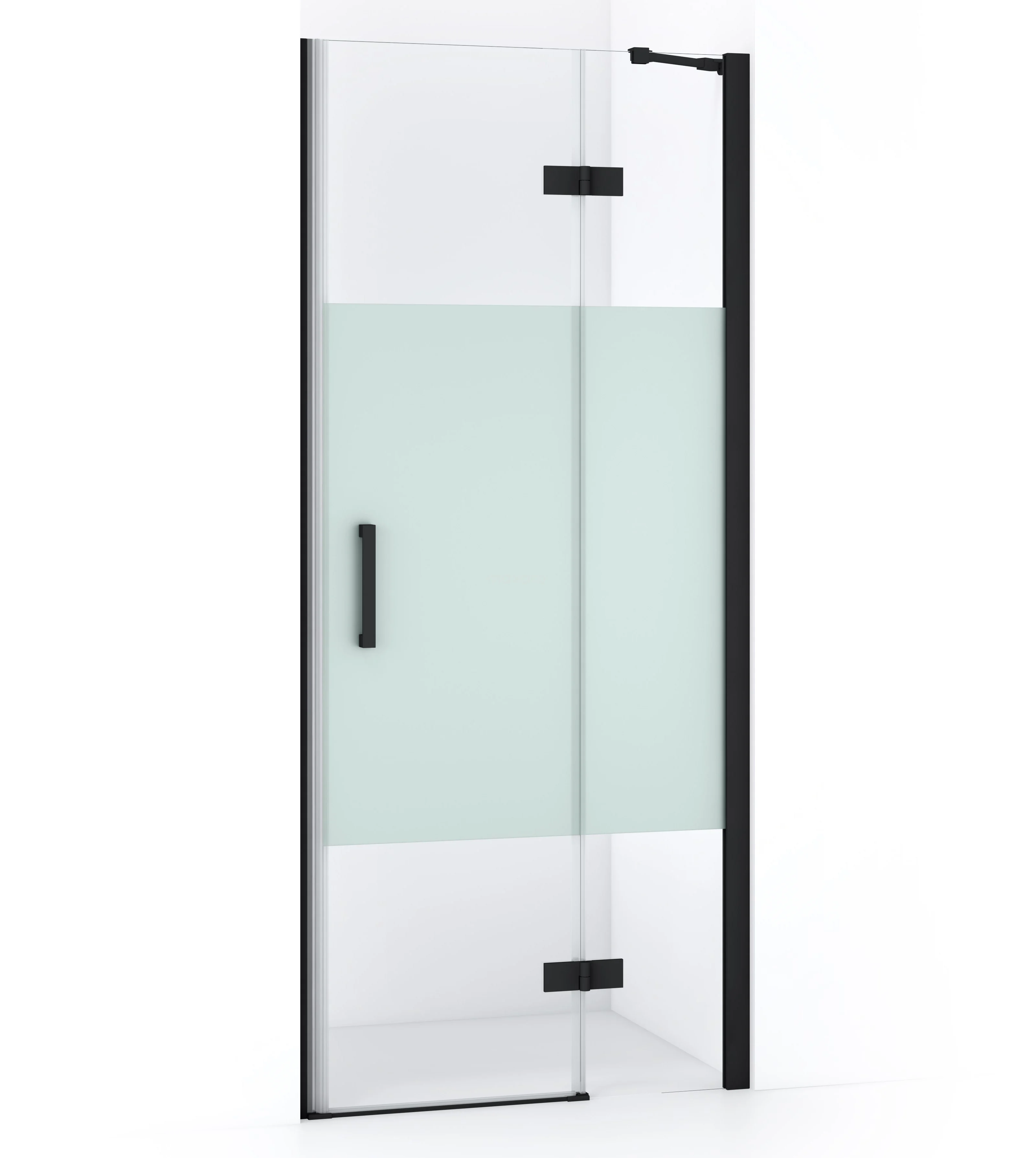 Diamond Duschtür | 80 cm Matt Schwarz Klar mit matter Streifen Drehtür