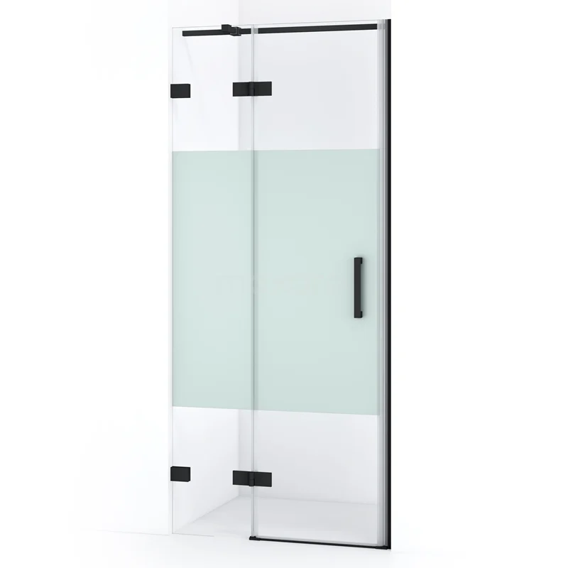 Diamond Duschtür | 80 cm Matt Schwarz Klar mit matter Streifen Drehtür