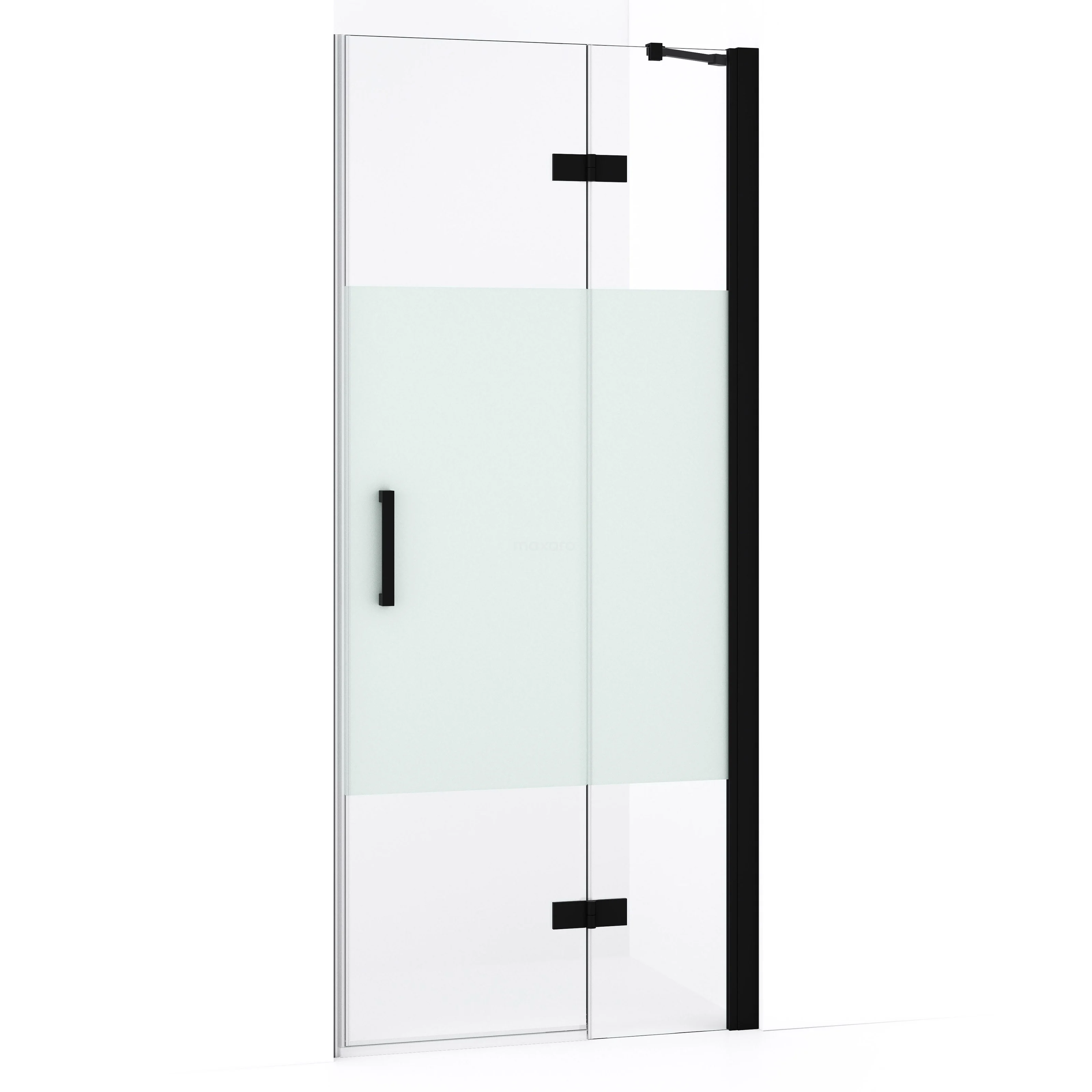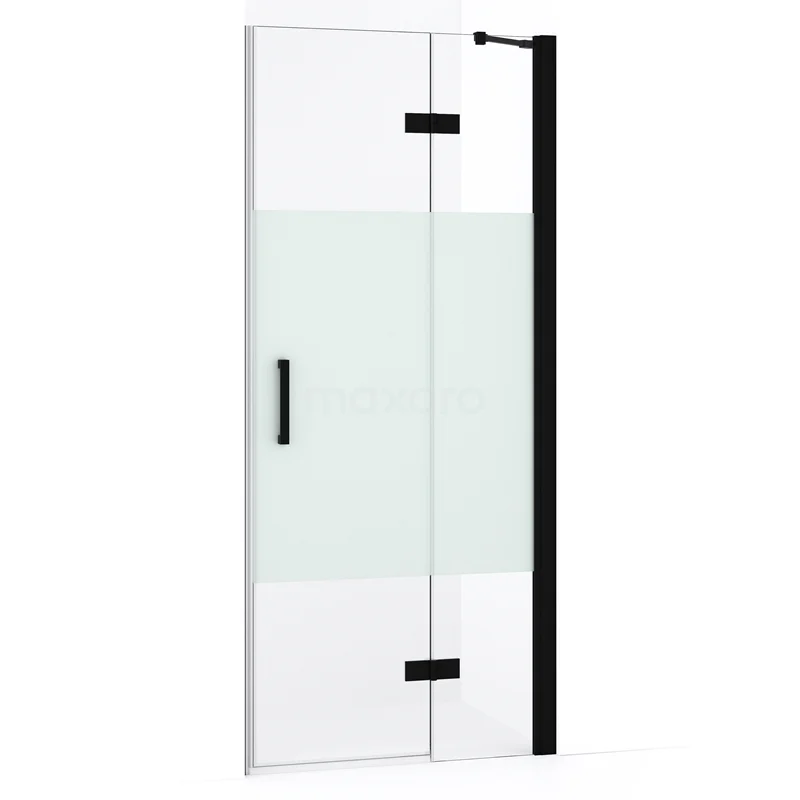 Diamond Duschtür | 80 cm Matt Schwarz Klar mit matter Streifen Drehtür