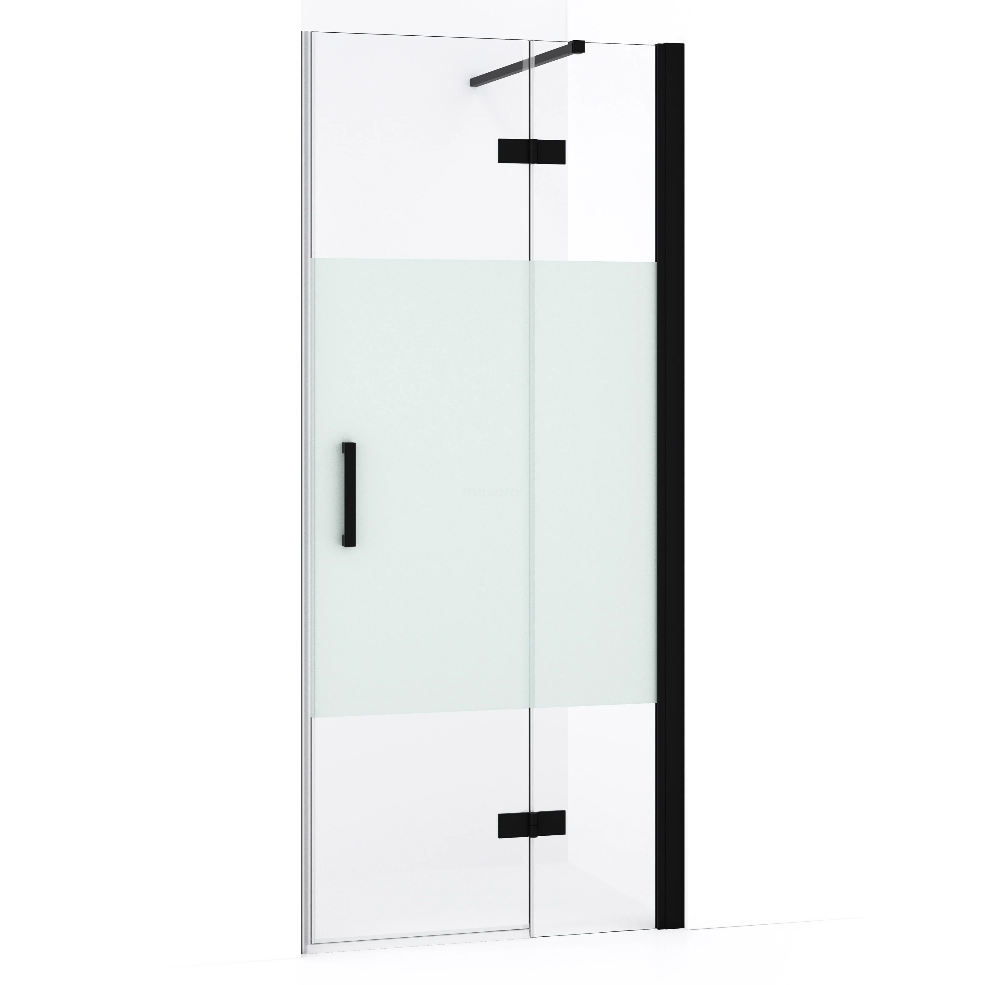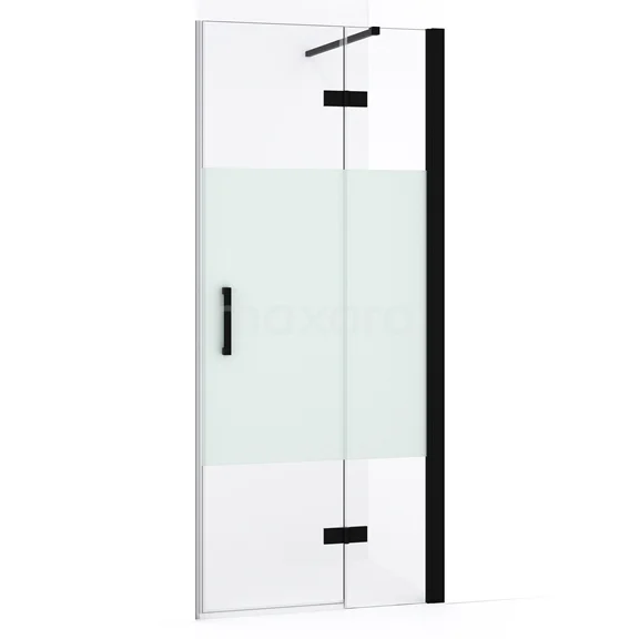 Diamond Duschtür | 80 cm Matt Schwarz Klar mit matter Streifen Drehtür