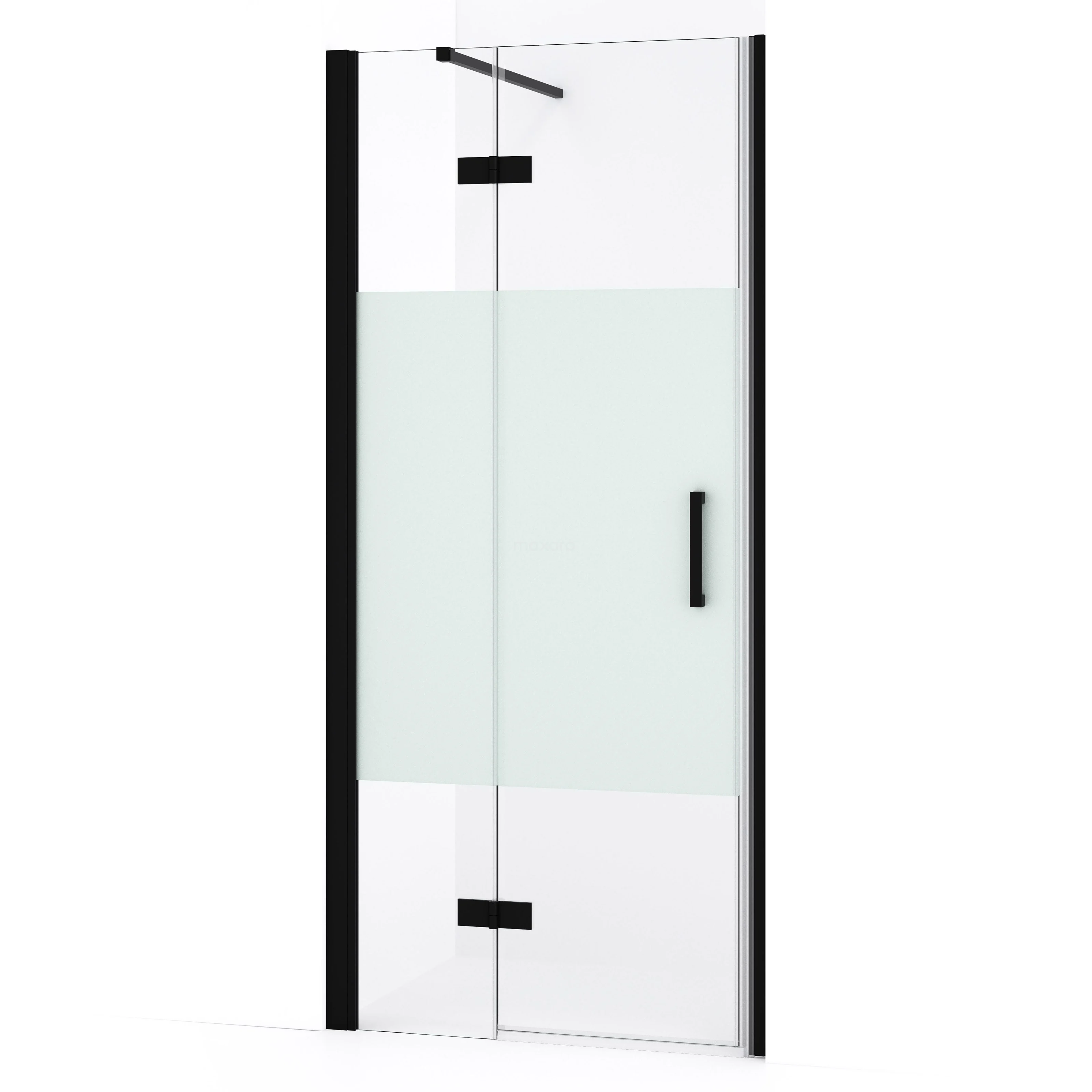 Diamond Duschtür | 80 cm Matt Schwarz Klar mit matter Streifen Drehtür