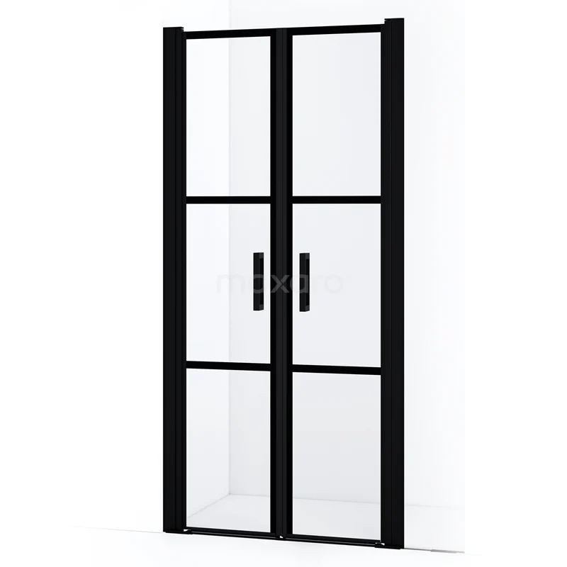 Diamond Duschtür | 80 cm Matt Schwarz Klar mit schwarzen Streifen Pendeltür