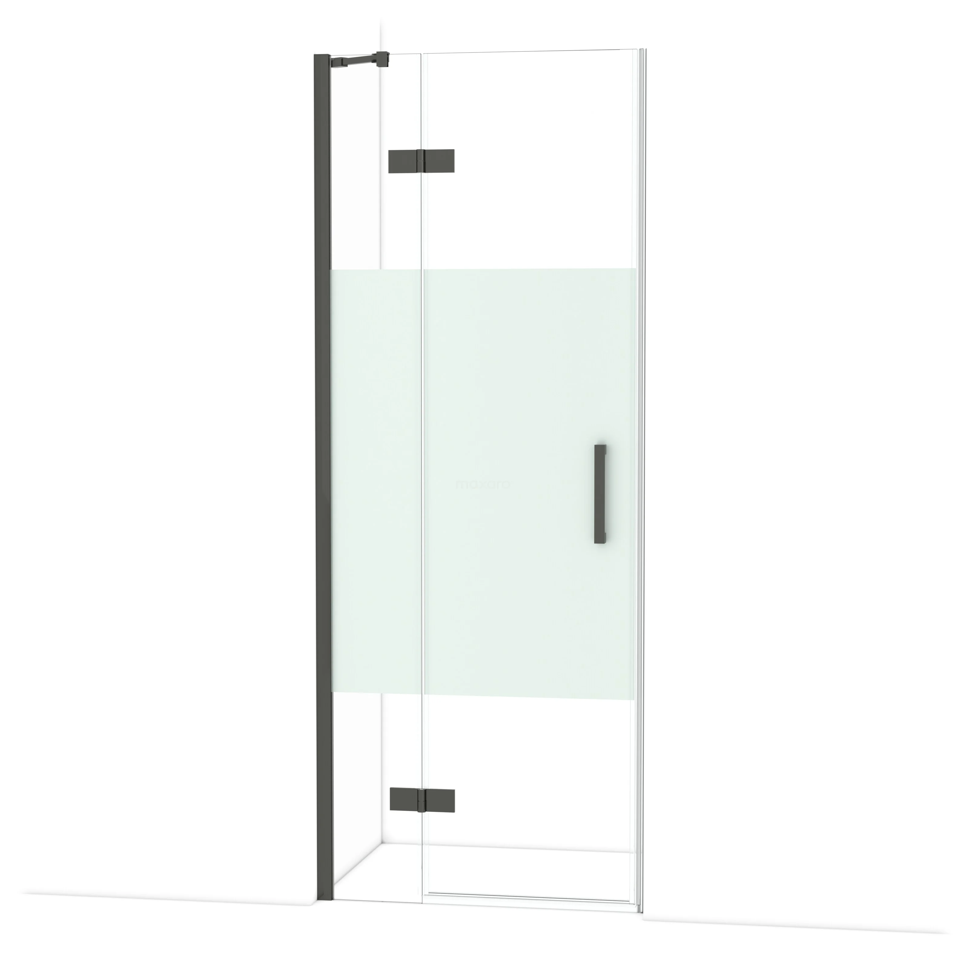 Diamond Duschtür | 80 cm Schwarzchrom Klar mit matter Streifen Drehtür
