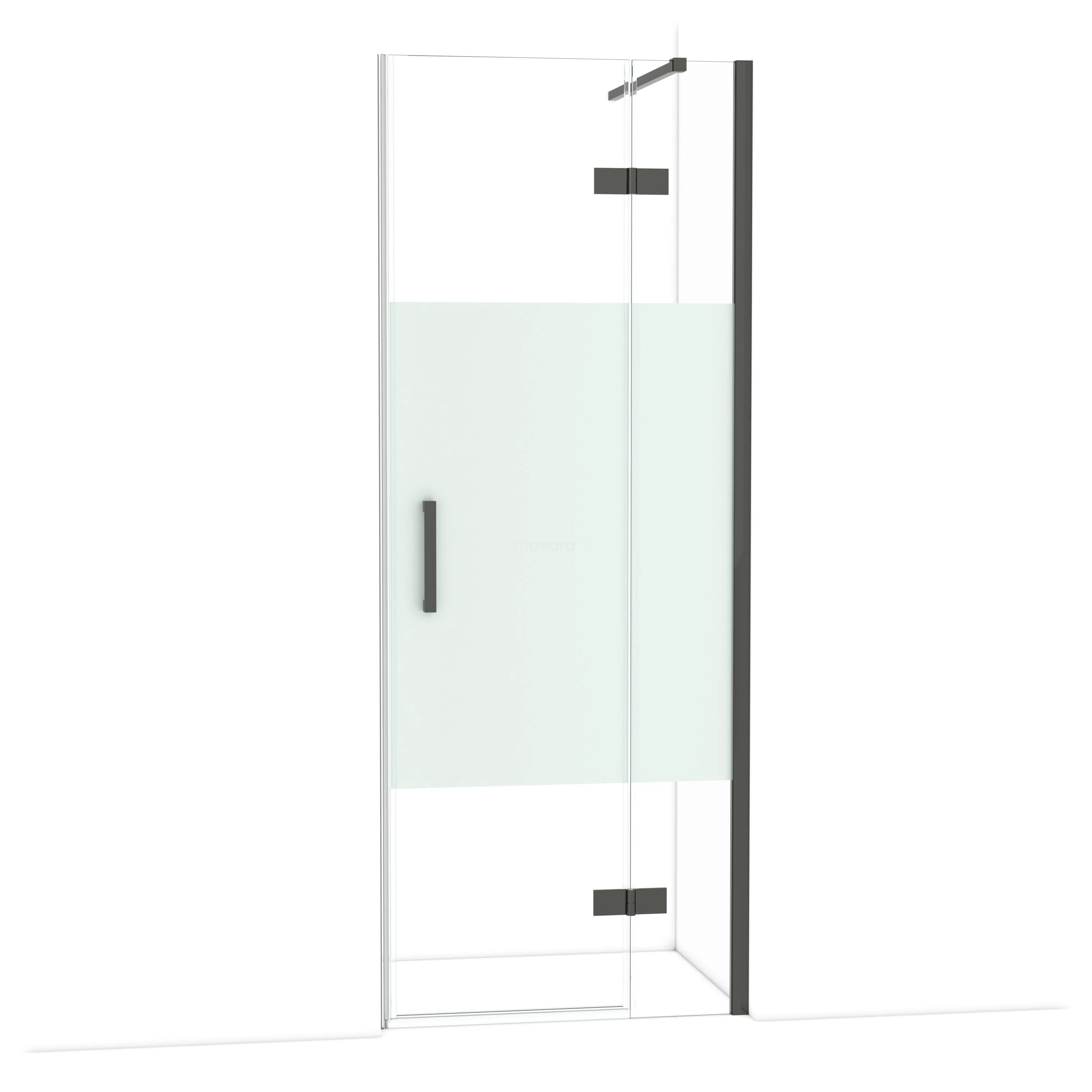 Diamond Duschtür | 80 cm Schwarzchrom Klar mit matter Streifen Drehtür