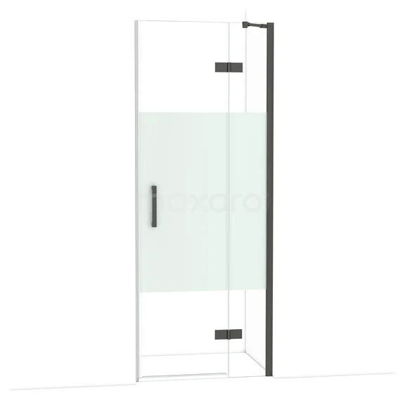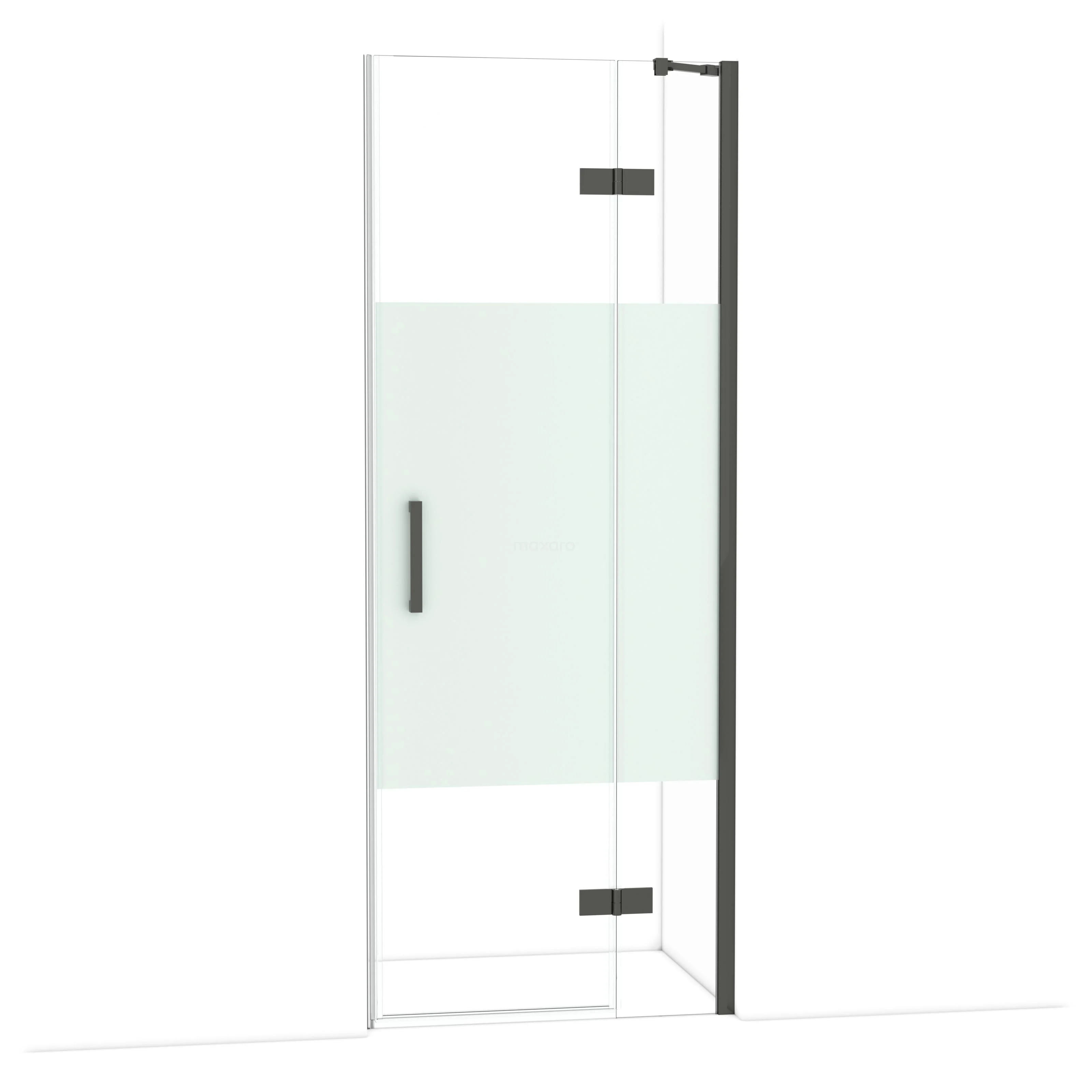 Diamond Duschtür | 80 cm Schwarzchrom Klar mit matter Streifen Drehtür