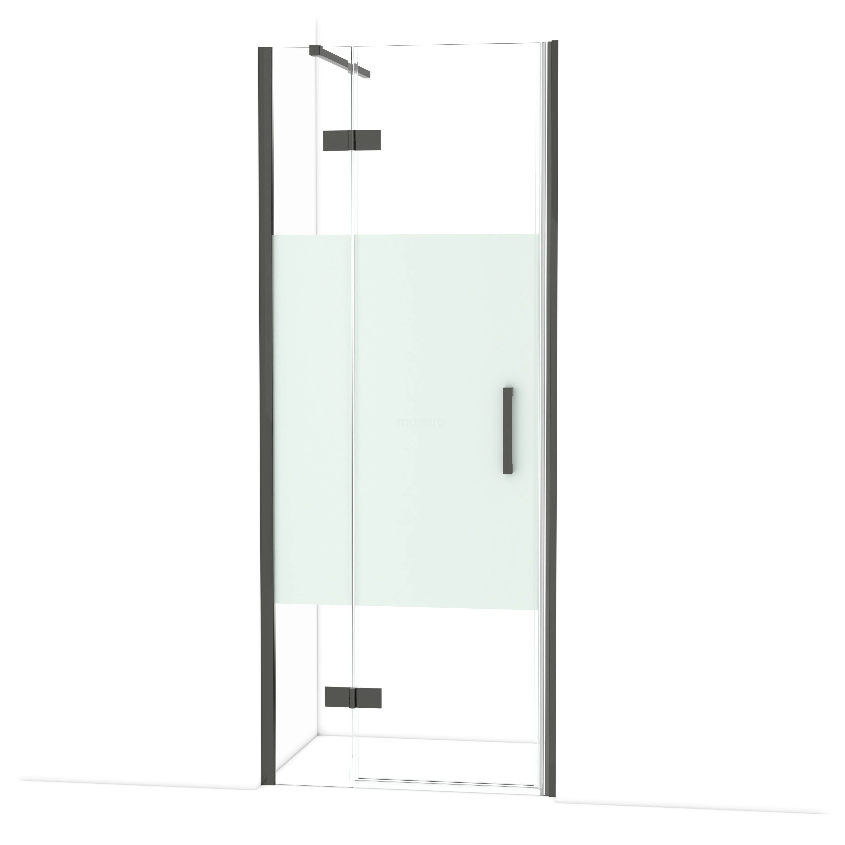 Diamond Duschtür | 80 cm Schwarzchrom Klar mit matter Streifen Drehtür