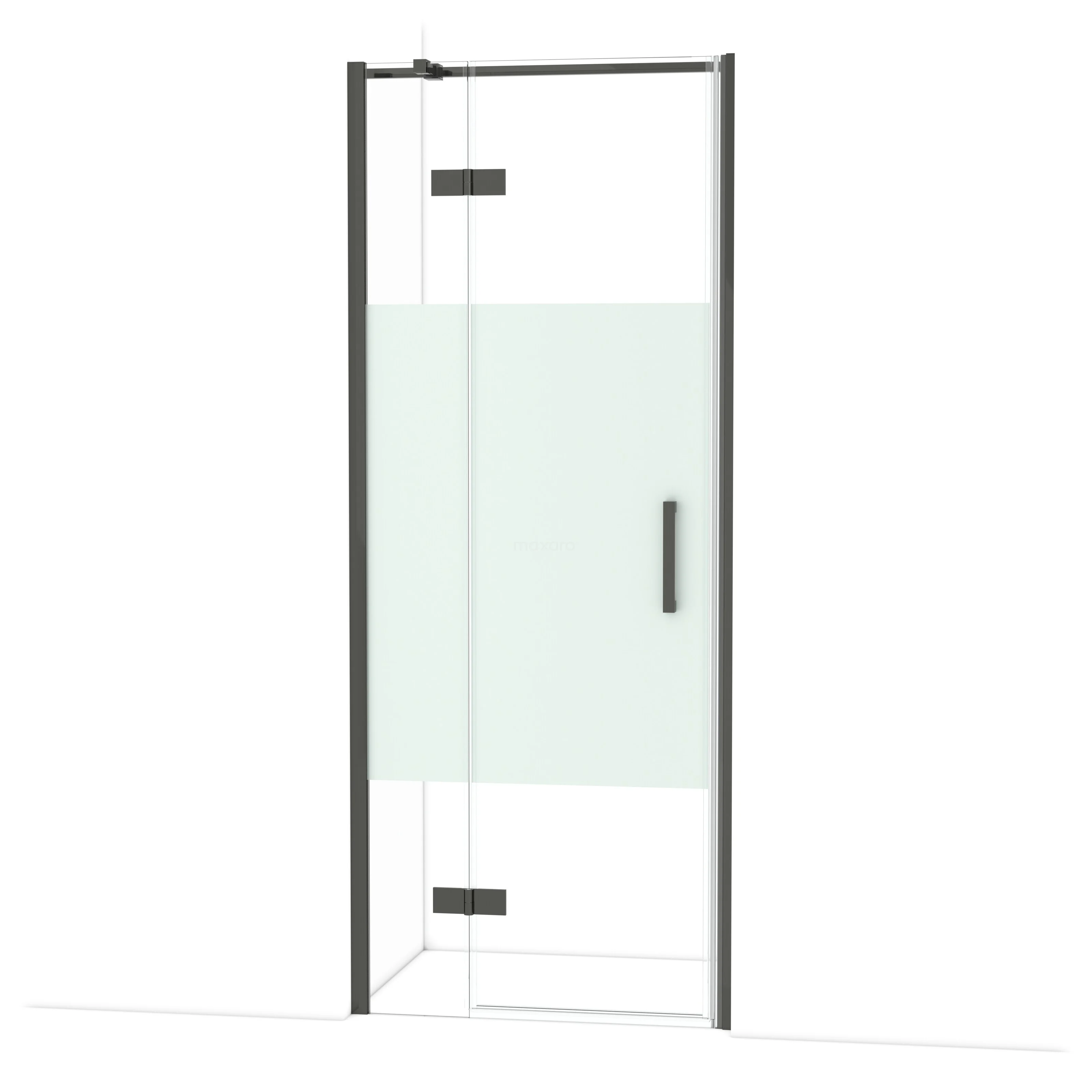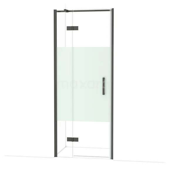 Diamond Duschtür | 80 cm Schwarzchrom Klar mit matter Streifen Drehtür
