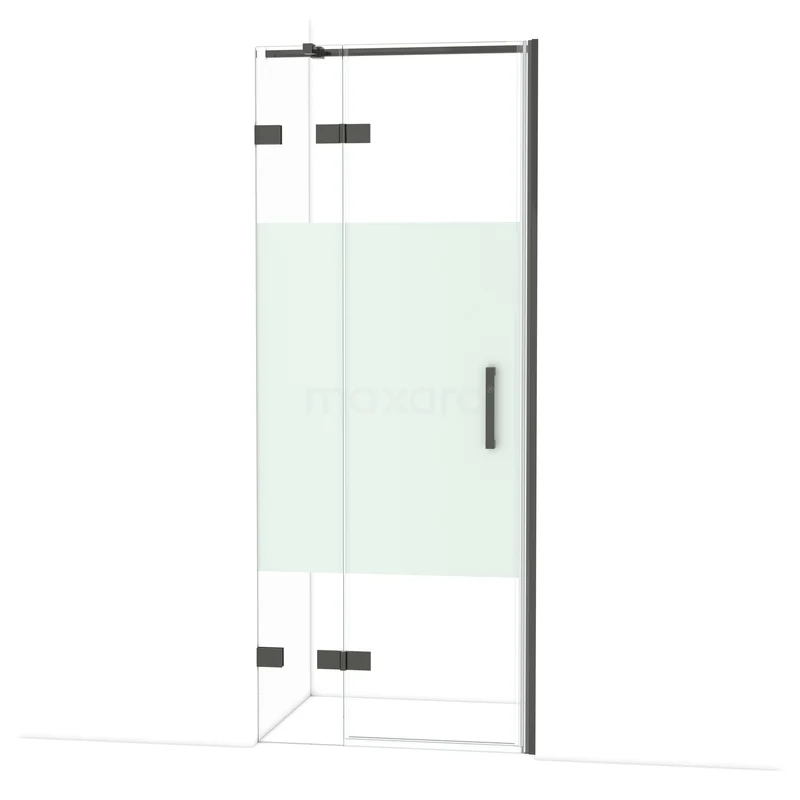 Diamond Duschtür | 80 cm Schwarzchrom Klar mit matter Streifen Drehtür