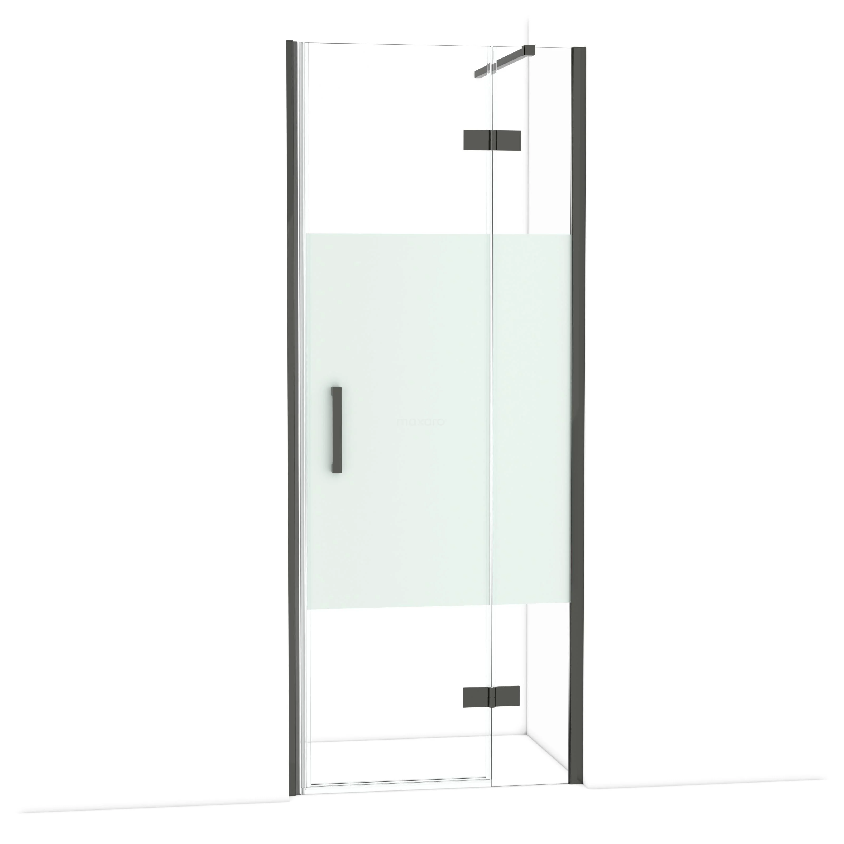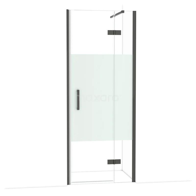 Diamond Duschtür | 80 cm Schwarzchrom Klar mit matter Streifen Drehtür