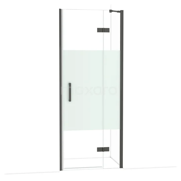 Diamond Duschtür | 80 cm Schwarzchrom Klar mit matter Streifen Drehtür