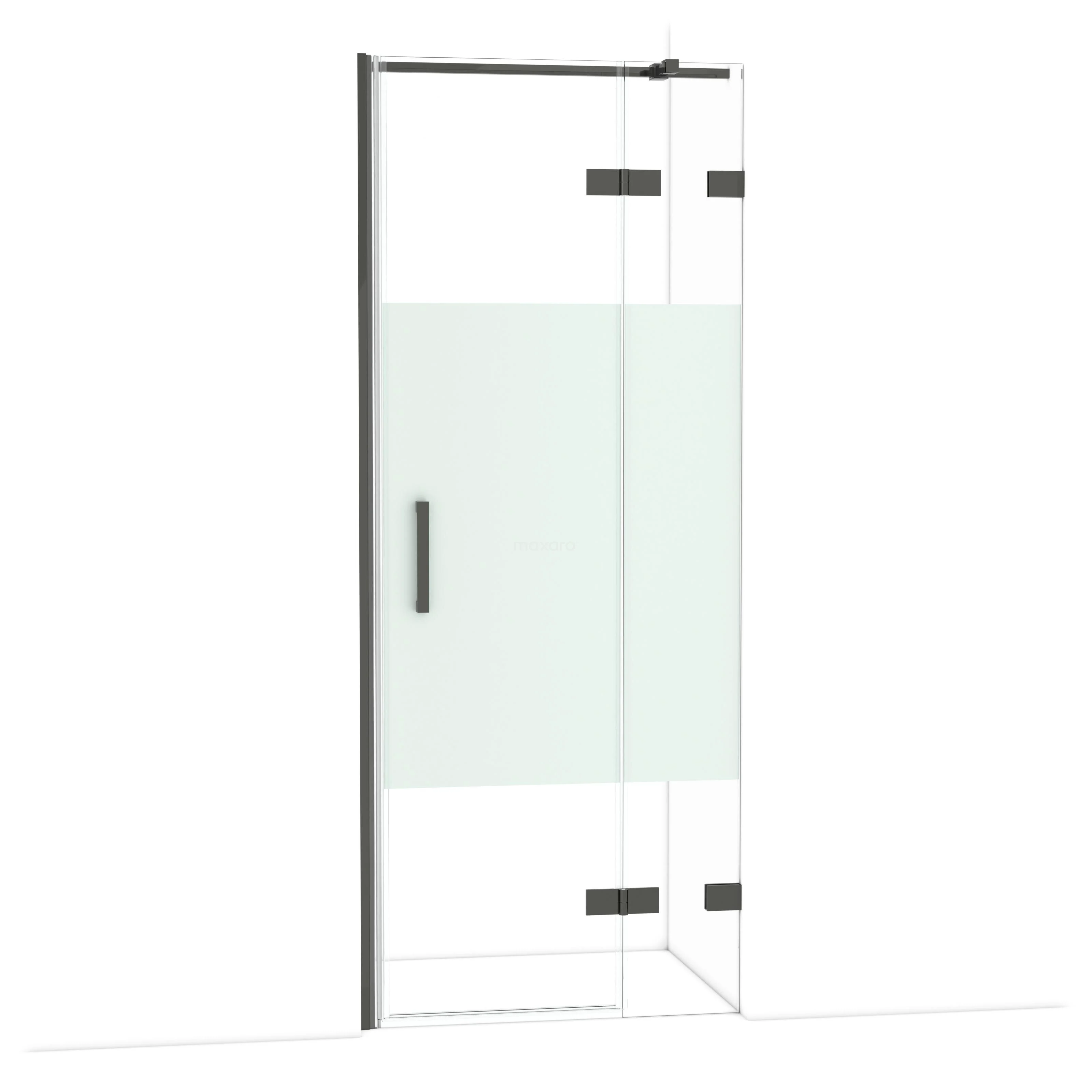 Diamond Duschtür | 80 cm Schwarzchrom Klar mit matter Streifen Drehtür