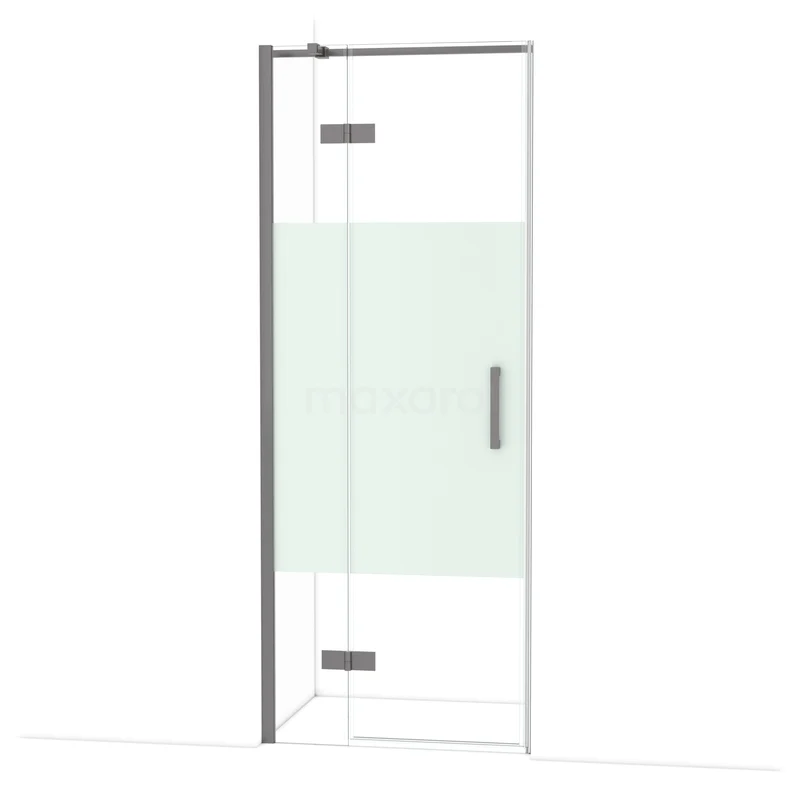 Diamond Duschtür | 80 cm Schwarzes Metall Klar mit matter Streifen Drehtür