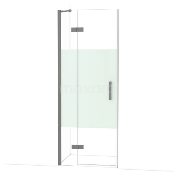 Diamond Duschtür | 80 cm Schwarzes Metall Klar mit matter Streifen Drehtür