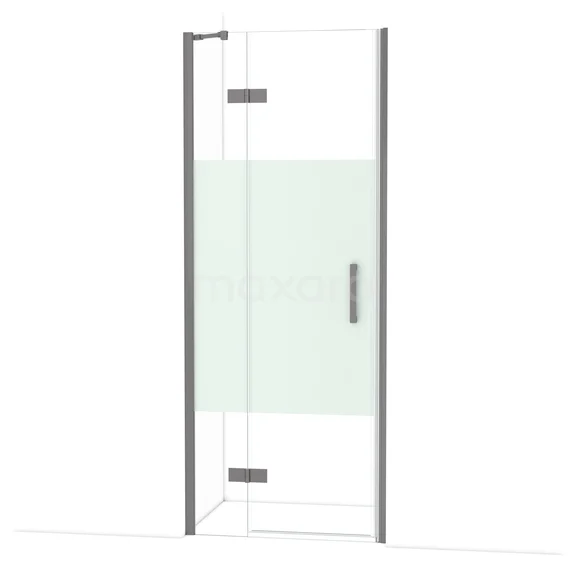 Diamond Duschtür | 80 cm Schwarzes Metall Klar mit matter Streifen Drehtür