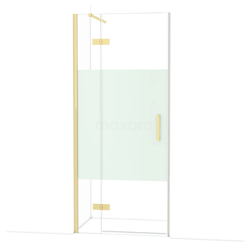 Diamond Duschtür | 90 cm Glänzendes Hellgold Klar mit matter Streifen Drehtür