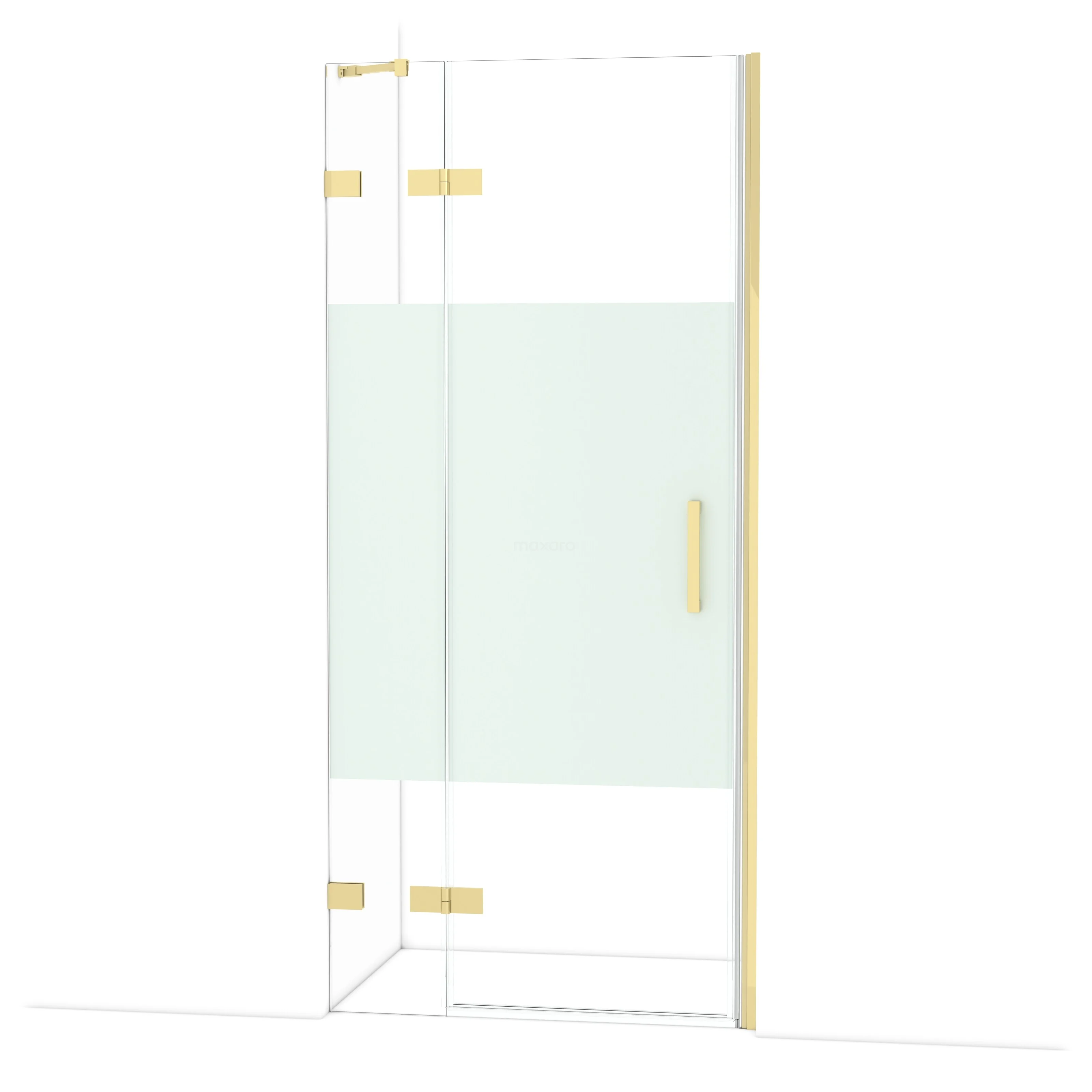 Diamond Duschtür | 90 cm Glänzendes Hellgold Klar mit matter Streifen Drehtür