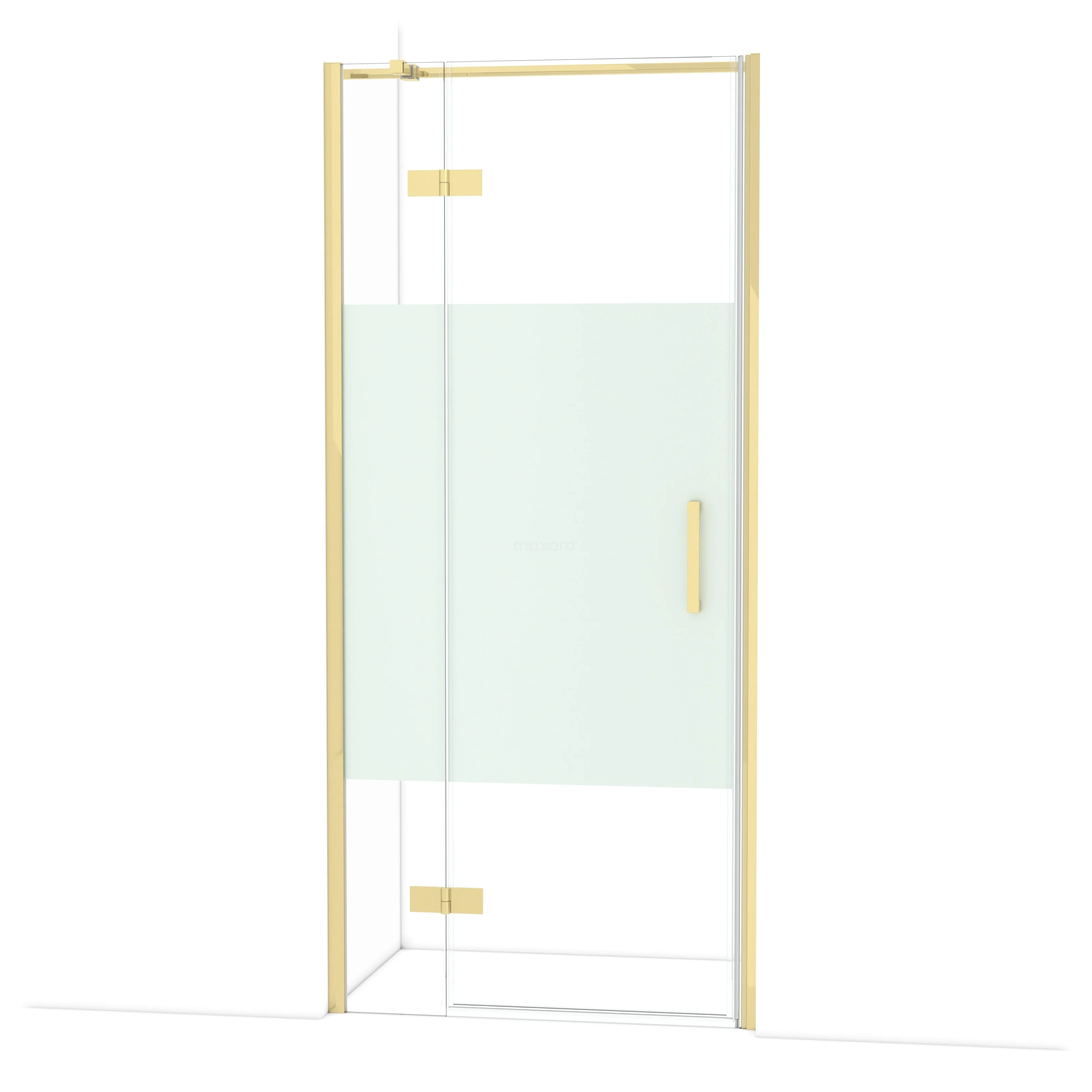 Diamond Duschtür | 90 cm Glänzendes Hellgold Klar mit matter Streifen Drehtür
