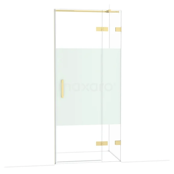 Diamond Duschtür | 90 cm Glänzendes Hellgold Klar mit matter Streifen Drehtür