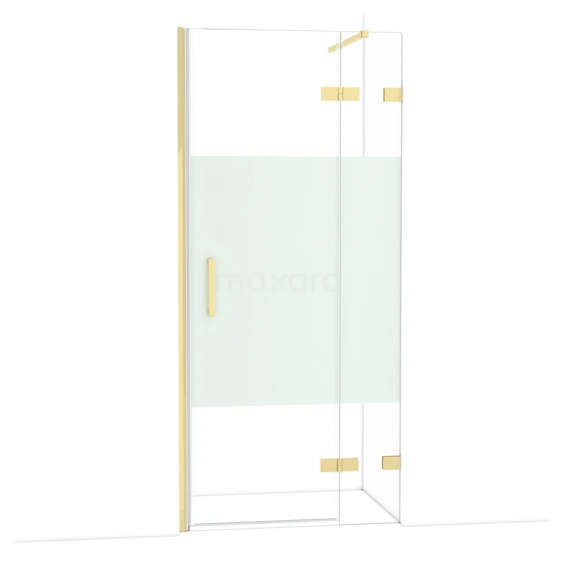 Diamond Duschtür | 90 cm Glänzendes Hellgold Klar mit matter Streifen Drehtür