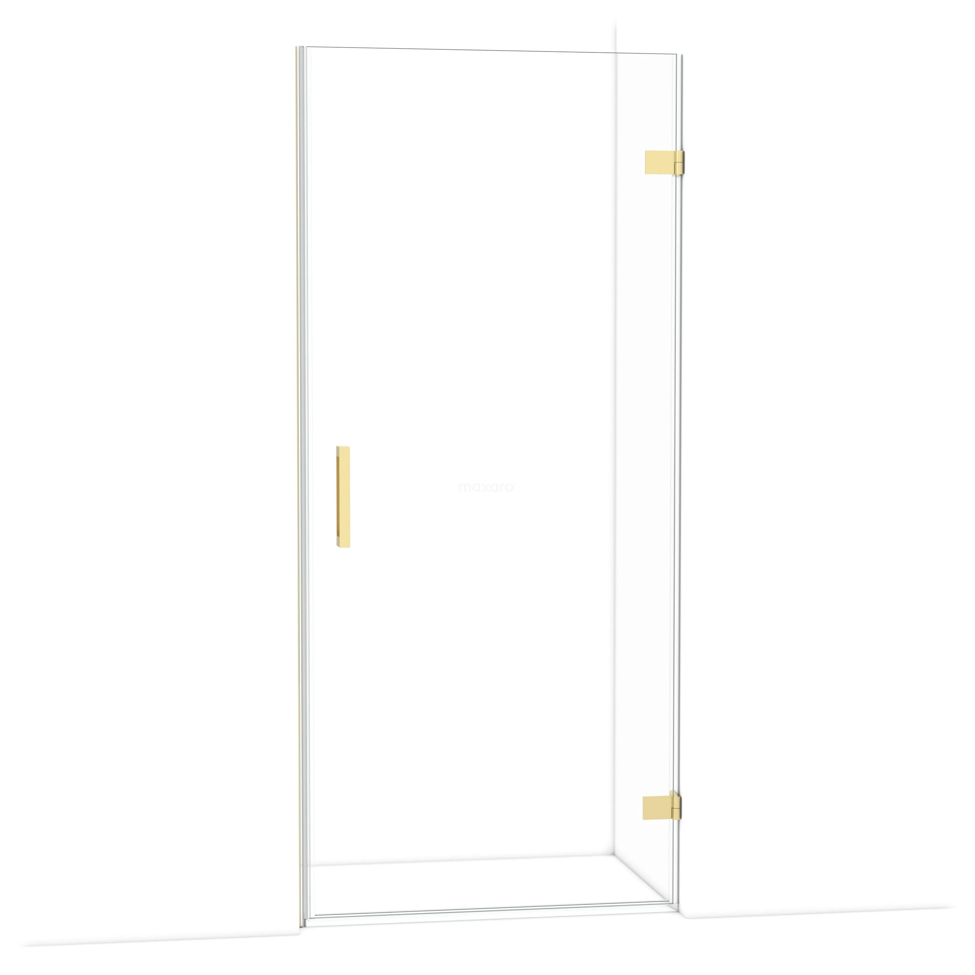 Die 90 cm lange Drehtür von Diamond ist ideal, um Ihren Duschbereich abzuschließen. Sie hat ein raffiniertes und luxuriöses Design in glänzendem Hellgold und verfügt über hochwertige Wandscharniere und einen vertikalen Griff. Das Klarglas sorgt für ein großzügiges Raumgefühl. Die Duschtür hat eine feste Größe von 90,0 cm.