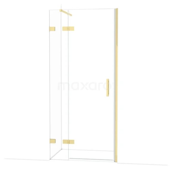 Die 90 cm lange Drehtür von Diamond ist ideal für den Abschluss Ihrer Duschnische. Sie hat ein raffiniertes und luxuriöses Design in glänzendem Hellgold und verfügt über hochwertige Scharniere, eine Zweipunktbefestigung und einen vertikalen Griff. Das Klarglas sorgt für ein großzügiges Raumgefühl. Die Verstellbarkeit macht es einfach, die Duschtür zu montieren. Die Gesamtbreite ist von 91,7 bis 92,7 cm verstellbar.