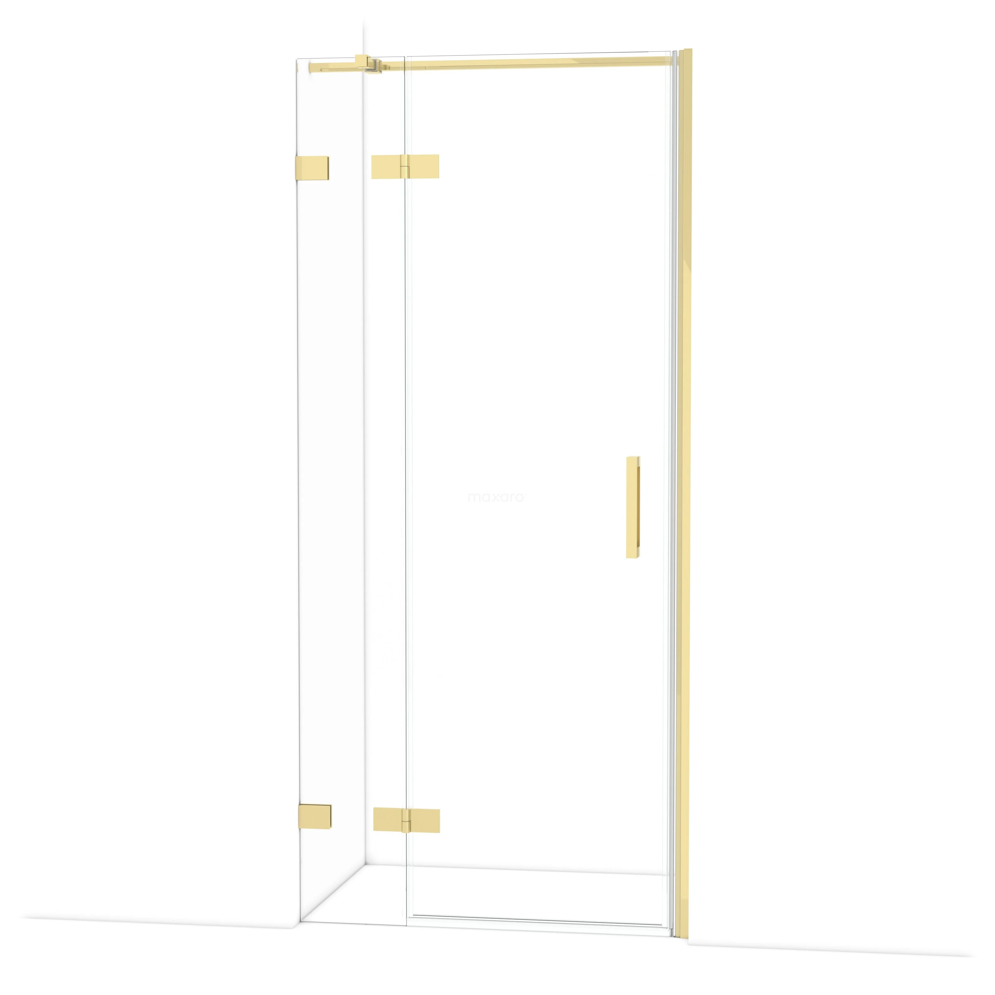 Die 90 cm lange Drehtür von Diamond ist ideal für den Abschluss Ihrer Duschnische. Sie hat ein raffiniertes und luxuriöses Design in glänzendem Hellgold und verfügt über hochwertige Scharniere, eine Zweipunktbefestigung und einen vertikalen Griff. Das Klarglas sorgt für ein großzügiges Raumgefühl. Die Verstellbarkeit macht es einfach, die Duschtür zu montieren. Die Gesamtbreite ist von 91,7 bis 92,7 cm verstellbar.