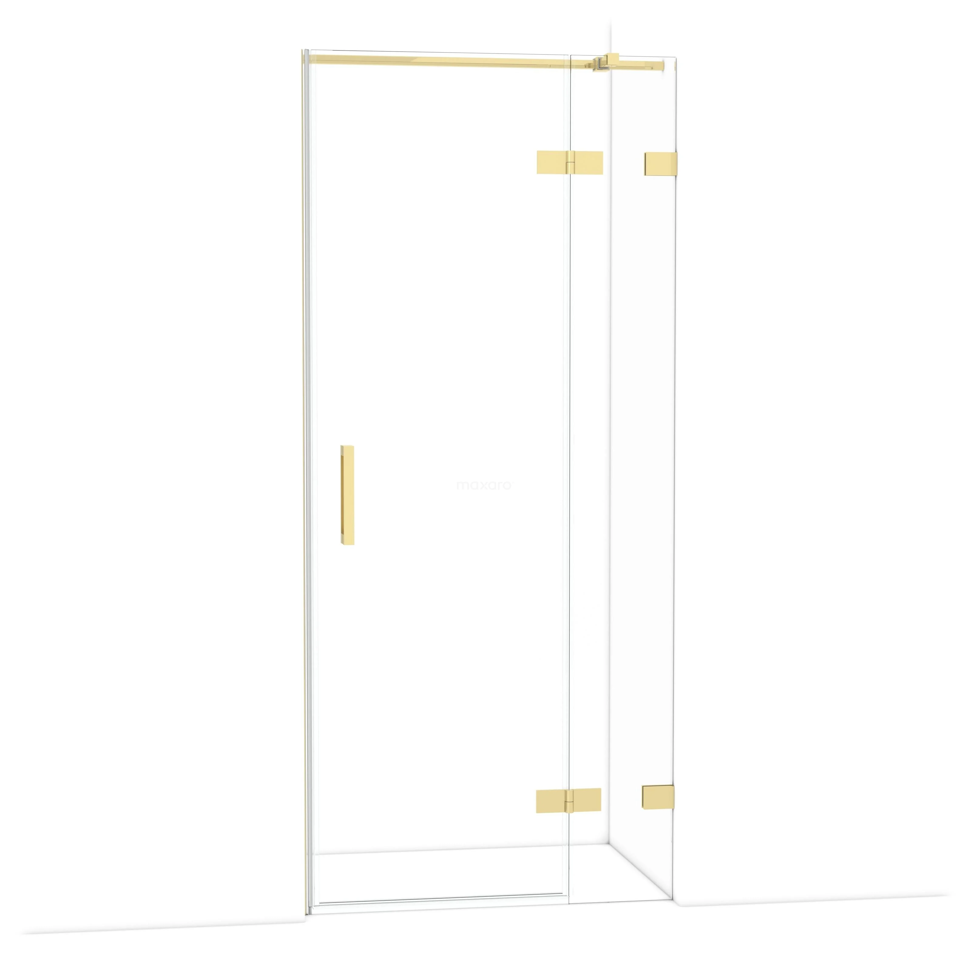 Die 90 cm lange Drehtür von Diamond ist ideal für den Abschluss Ihrer Duschnische. Sie hat ein raffiniertes und luxuriöses Design in glänzendem Hellgold und verfügt über hochwertige Scharniere, eine Zweipunktbefestigung und einen vertikalen Griff. Das Klarglas sorgt für ein großzügiges Raumgefühl. Die Verstellbarkeit macht es einfach, die Duschtür zu montieren. Die Gesamtbreite ist von 89,7 bis 90 cm verstellbar.