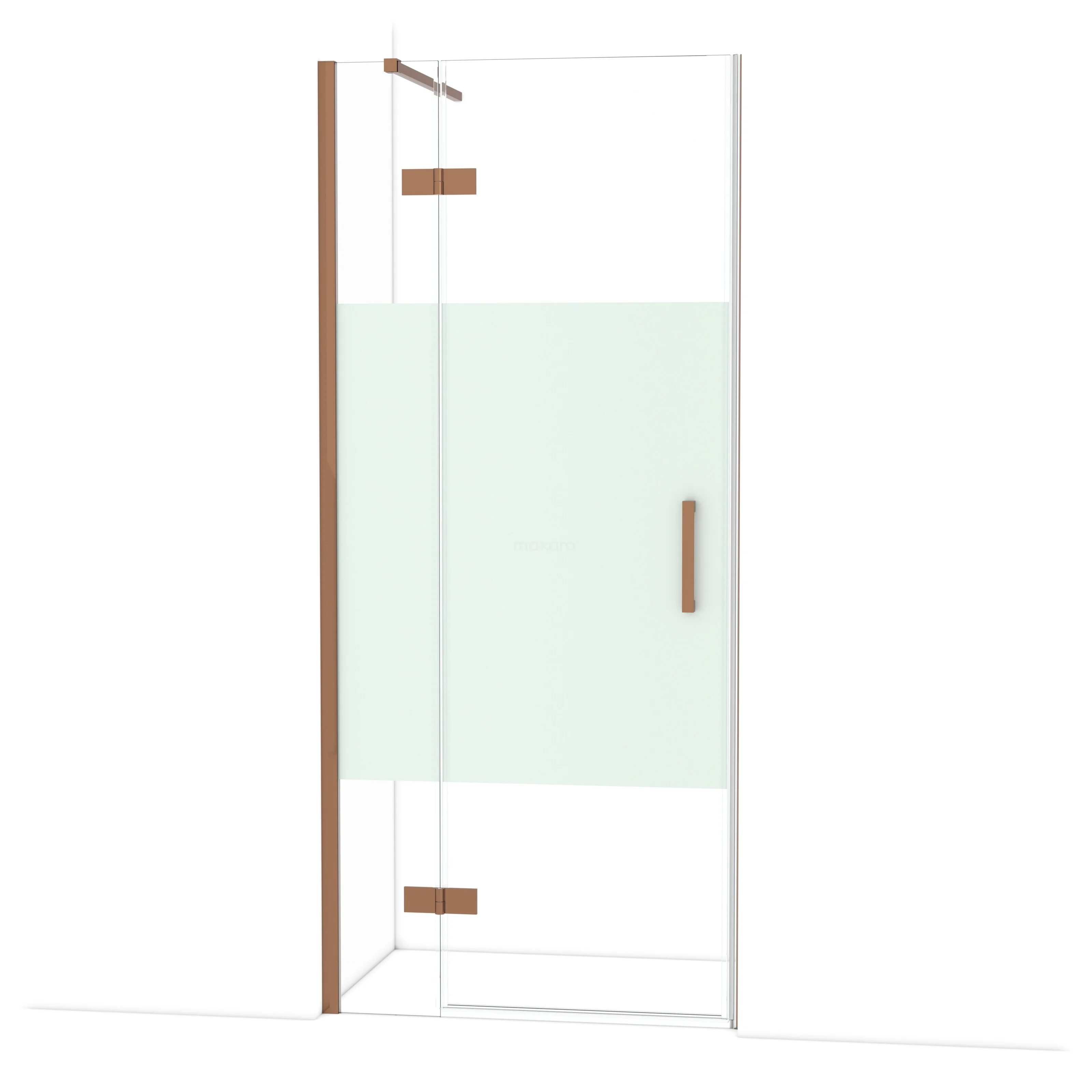 Diamond Duschtür | 90 cm Glänzendes Kupfer Klar mit matter Streifen Drehtür