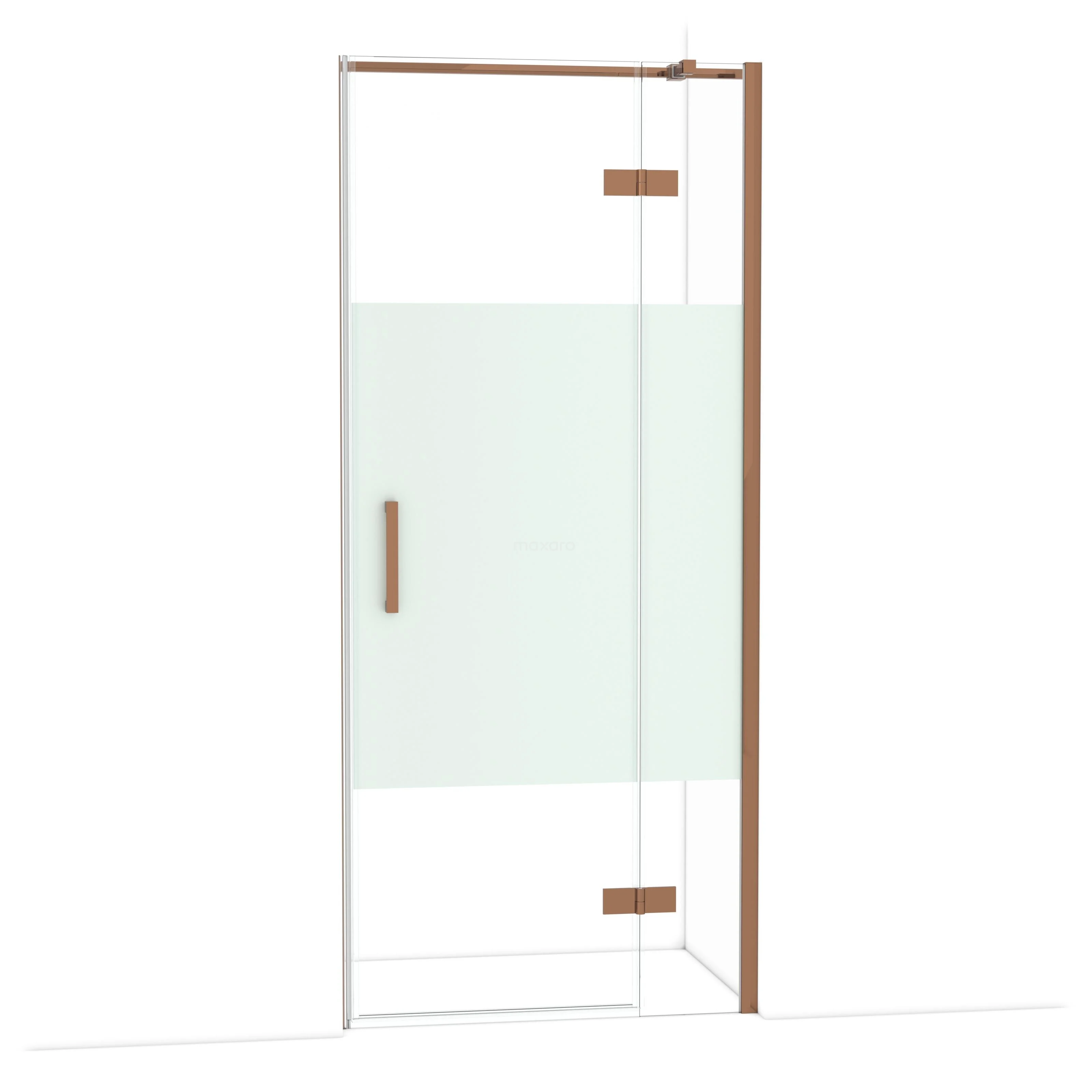 Diamond Duschtür | 90 cm Glänzendes Kupfer Klar mit matter Streifen Drehtür